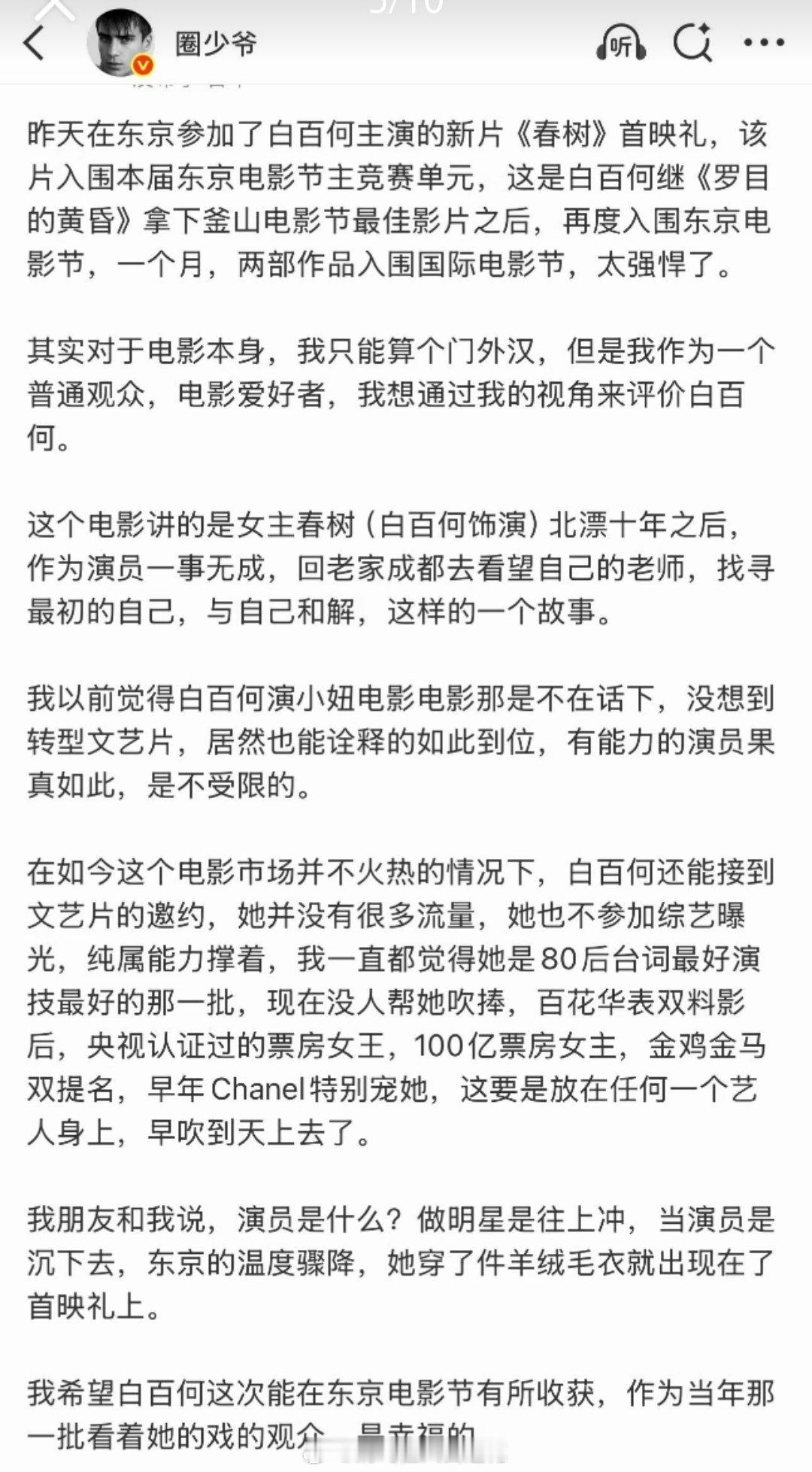 白百何 还能这么操作所有人都在夸《春树》白百何和刘丹,以为东京影后会是白百何,结果东京电影节好像把影帝给了《春树》男主王传君。