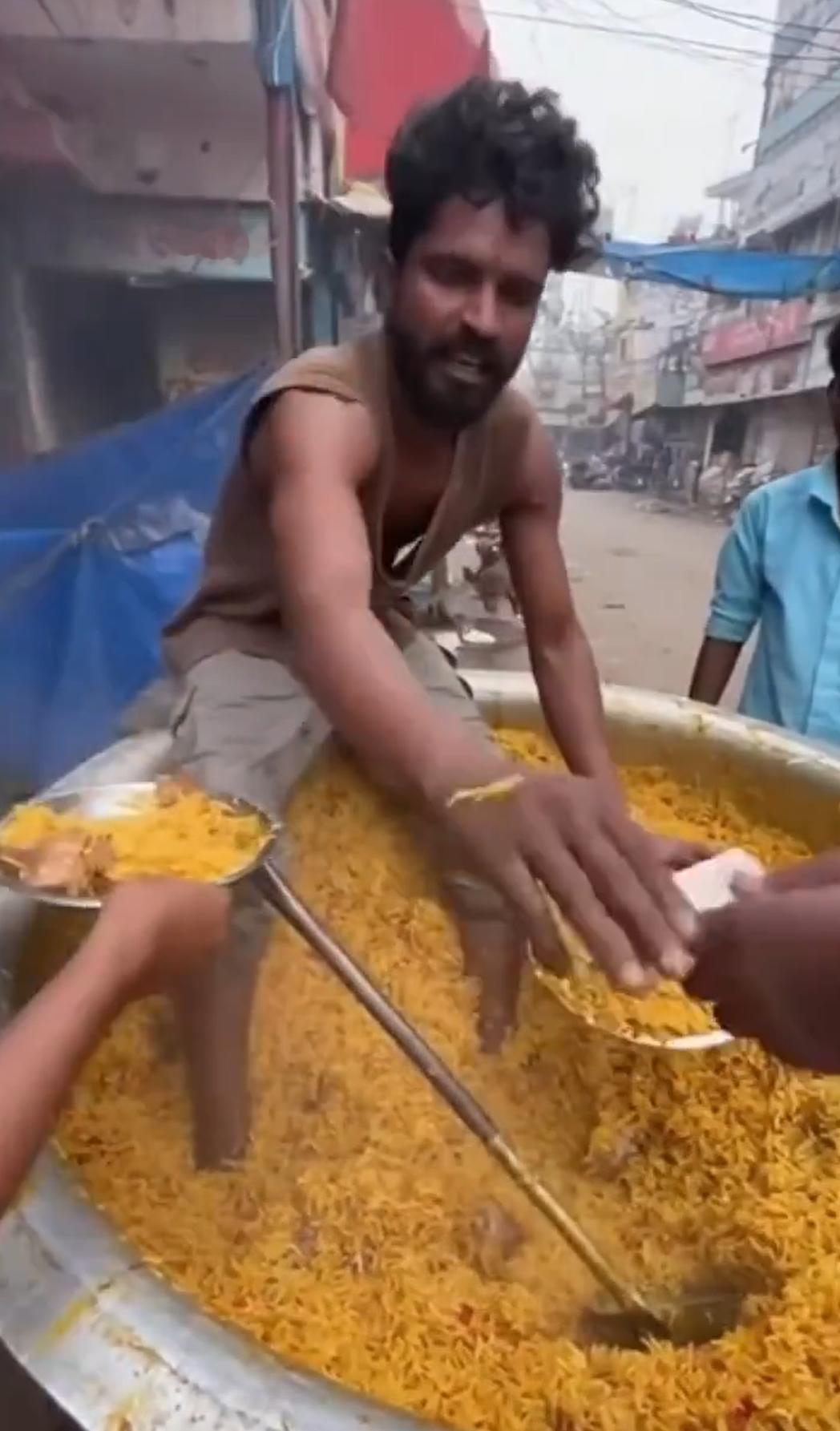 正宗的印度美食,看上去就反胃,有没有。 见过印度街边小吃,做法不卫生的,香料五颜六色的,厨子胡子拉碴的,但是真是第一次见,居然还有坐在饭缸里打饭的。 估计印度的这道美食,主要的精华,就在那双埋在饭里的双脚散发出来的独特气味和汗渍了吧。 最近听说,国内开了不少的印度餐厅,不知道生意怎么样? 真有人会去吃印度餐吗? 如果有人吃,只能说佩服他们,同时建议他们,吃饭之前,可以去后厨看看。 或许会为大发现。
