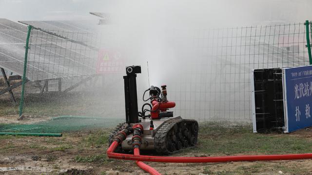 记者了解到,本次演练首次增设了光伏电站起火处置科目,呼应绿色能源发展安全需求,消防救援力量运用侦查机器人、无人机构建空地一体化侦查网络,配合消防机器人与举高喷射车合力扑灭火情,展现了应急处置的与时俱进。