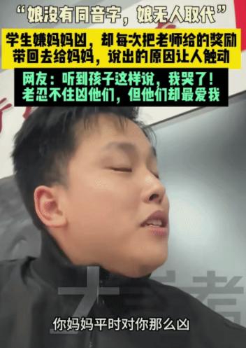 看哭了!广东,学生嫌妈妈凶,却每次把老师给的奖励带回去给妈妈。没想到老师问他原因,他说出来的原因让人触动。视频中,老师问学生:“为啥我奖励你的东西,你都会带回家,你带回家给谁吃啊。”   广东一所小学的午后教室里,阳光透过窗户洒在课桌上,班主任张老师正给表现好的学生发奖励,几包奶味饼干。   人群里,10岁的小宇接过饼干,没有像其他同学那样立刻拆开,而是掏出纸巾层层包裹,指尖轻轻压了压边角,小心翼翼塞进了裤兜。   这个动作张老师看了好几次,终于忍不住叫住了他。    为啥我奖励你的东西,你都会带回家,你带回家给谁吃啊?张老师的声音温和,带着几分好奇。   小宇闻言低下头,嘴角偷偷往上扬了一下,两只手在背后绞了绞校服衣角,声音细细的却很清楚,给我妈妈吃。   张老师愣了愣,又追问,你妈妈平时对你那么凶,上次还因为作业慢批评你,你不生气吗?   小宇猛地抬起头,眼神特别坚定,妈妈是为我好,你不是说过嘛,娘没有同音字,娘无人取代。   这句话让教室里瞬间安静下来,张老师看着眼前这个脸蛋还带着婴儿肥的男孩,突然想起上个月的语文课。   当时讲到“家人”主题,她随口举例子,‘娘’这个字,全中国的汉字里找不出第二个同音的,就像妈妈在你们生命里的位置,谁都替代不了。   没想到这句无心之语,竟被孩子牢牢刻在了心里,这段被张老师记录下来的视频,很快在网上传开,播放量短短几天就涨到9.7万。   视频里的小宇后来在镜头前还嘟着嘴“抱怨”,妈妈总催我写作业,声音好大,有时候还会没收我的漫画书。   可当妈妈伸出手时,他还是立刻把饼干递了过去,小手还特意把包装纸捋平了才递到妈妈掌心。    小宇的妈妈李女士后来在采访里红了眼眶,每次凶完他我都后悔,晚上偷偷看他睡着没,摸着他被我批评时哭红的眼睛,心里比针扎还疼。   她坦言自己性子急,加上做家政工作常加班,回家看到孩子作业拖沓就容易上火,但从没真的想过要苛责他,就怕他以后养成坏习惯,在社会上吃亏。   教育专家李玫瑾也曾提到,父母的“凶”往往藏着对孩子的期望和担心,那些严厉的语气背后,是怕孩子走弯路的焦虑。    张老师发现,自那以后小宇带奖励回家的次数更多了。   有时是课堂上得的小红花,他会贴在妈妈手机壳背面;有时是作文比赛的奖状,哪怕边角被书包磨卷了边,他也会第一时间举到妈妈面前。   孩子或许会对父母的严厉皱眉,但从不会停止爱他们,更让人动容的是教育带来的微妙影响。   张老师从没想过自己随口的一句话能生根发芽,就像她没想到小宇会把“娘无同音”当成理解妈妈的钥匙。   这恰是教育最珍贵的模样,不是灌输多少知识,而是在孩子心里播下爱与感恩的种子。   情里的“凶”从来不是真的伤害,只是爱到深处的笨拙表达。   大人总习惯用声音表达情绪,可孩子却在用心灵感知爱意,那些被悄悄藏起来的奖励,那些没说出口的理解,正是家庭最暖的底色。