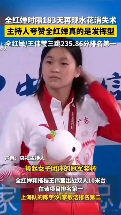 全红婵伤愈夺冠,久久凝视金牌,这一路艰辛唯她知。 全红婵康复后首次亮相就惊艳全场!两个满分动作稳稳拿下冠军,这表现真的太强了!比赛结束后,她捧着金牌反复端详,还小心翼翼地抚摸——哪像是奥运冠军,根本就是个收到心爱礼物的小女孩呀! 更让人暖心的是,小姑娘一转身就蹦蹦跳跳地跑向观众席,开心地接住粉丝扔下来的娃娃,抱在怀里不撒手。从受伤休养到重返赛场巅峰,她眼神里的那份专注和喜悦始终没变,这种纯粹的热爱特别打动人心! 现在留着长发的全红婵又美又强,怪不得全场观众都忍不住为她欢呼鼓掌。所以说,真正厉害的人从来不怕重新出发,因为热爱就是最棒的天赋! 不知道你们有没有被这一幕暖到?一起来聊聊,你们觉得运动员最让人佩服的特质是什么!