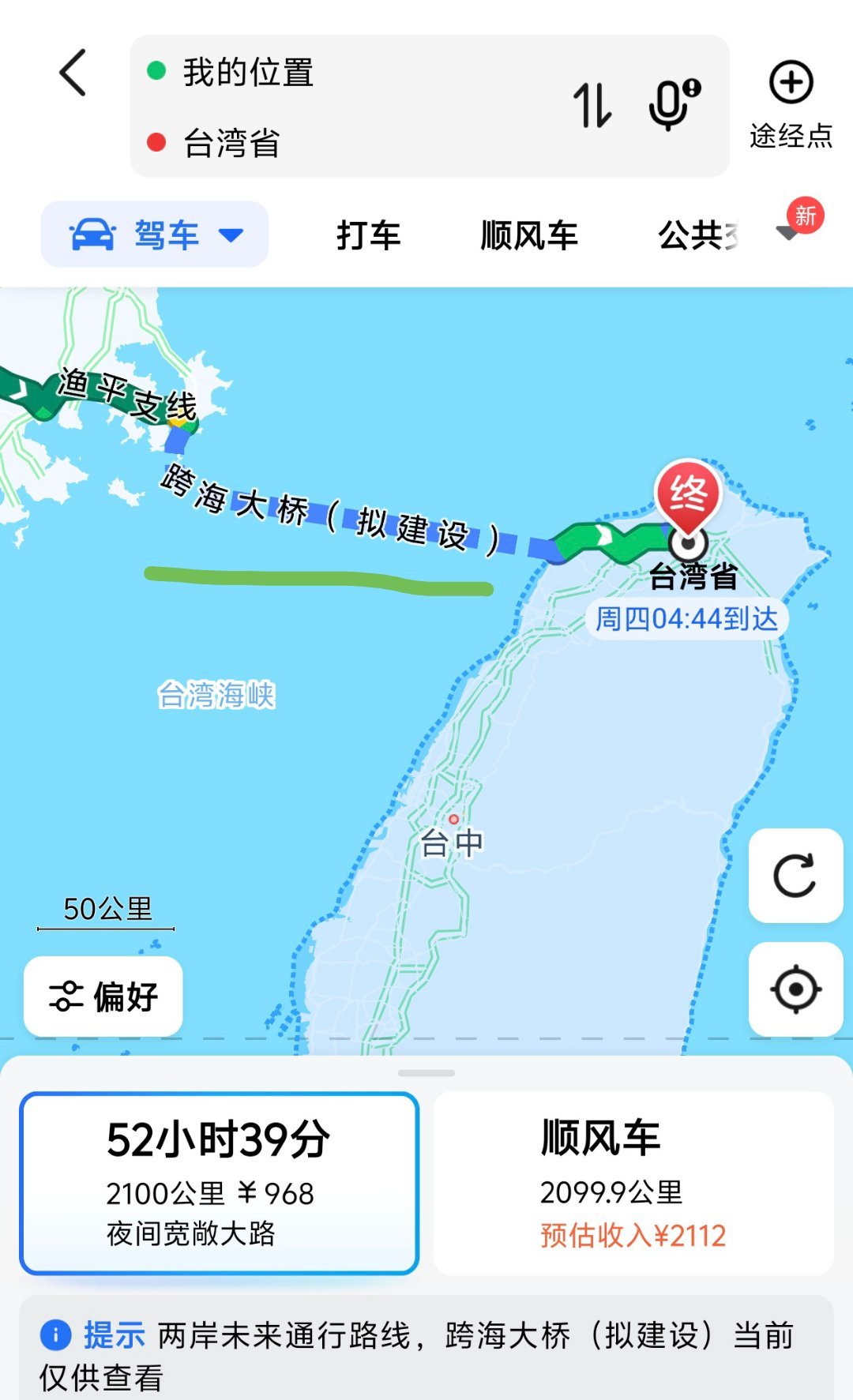 台湾省可以用高德导航了 跨海大桥(拟建设)[阴险]