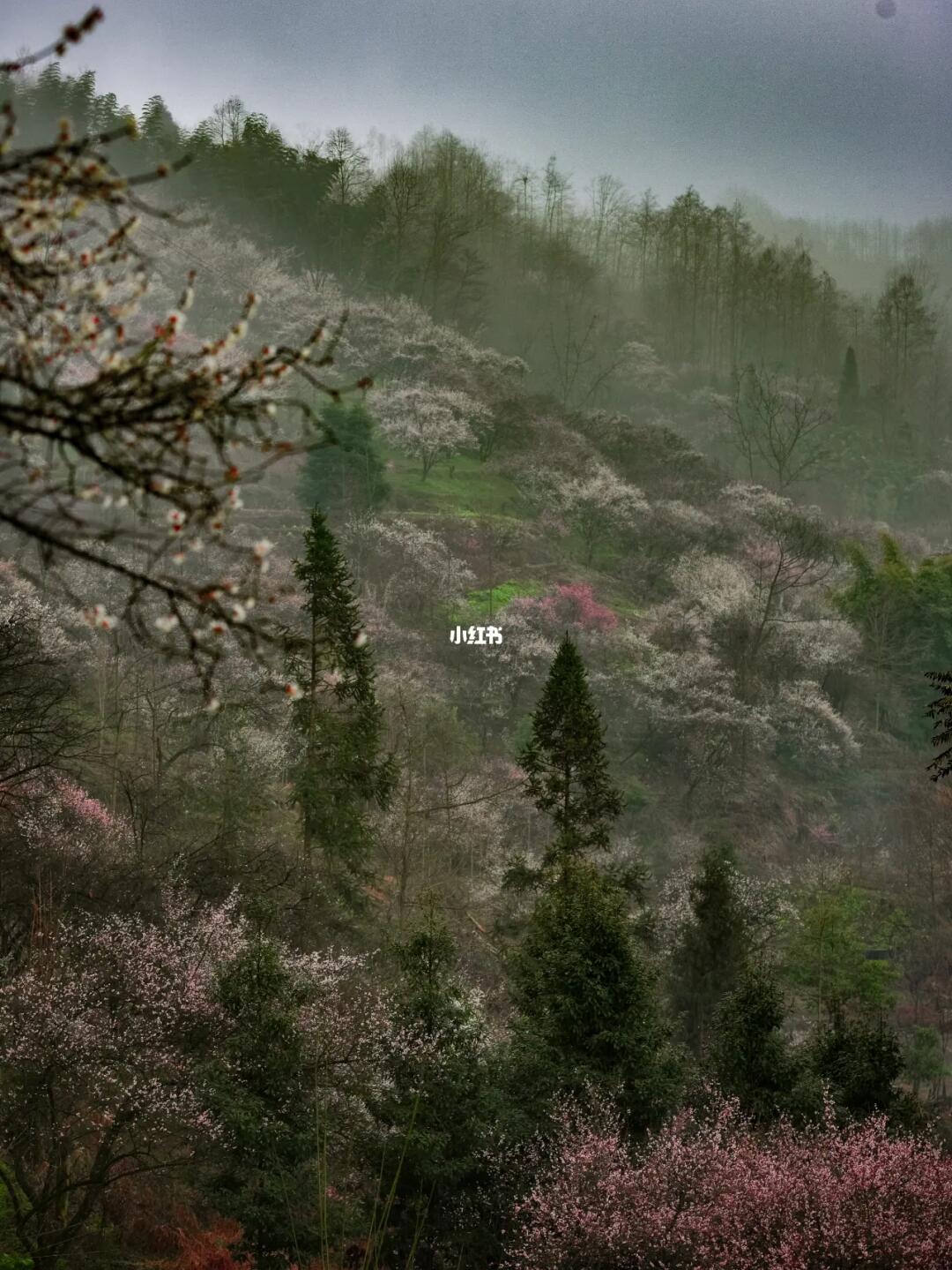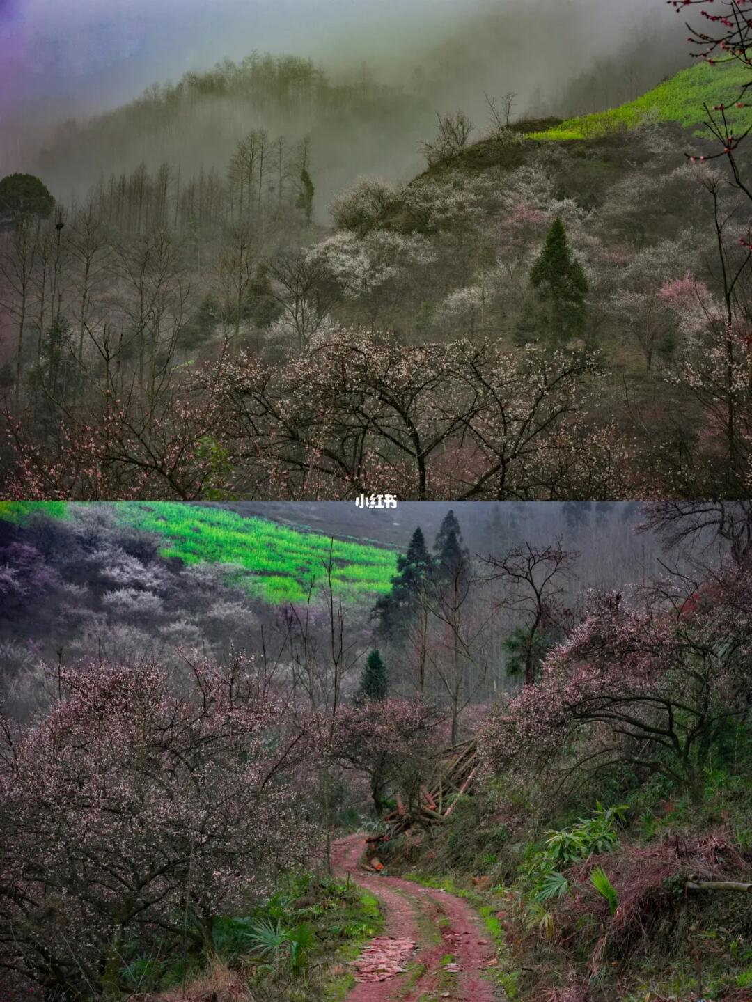 漫步在这梅花环绕🌸的山谷,漫山遍野开满枝头的梅花把这里装点成了粉色和白色的海洋,映衬着腾腾的雾气,如梦如幻,像是进入了油画中的世界🏞