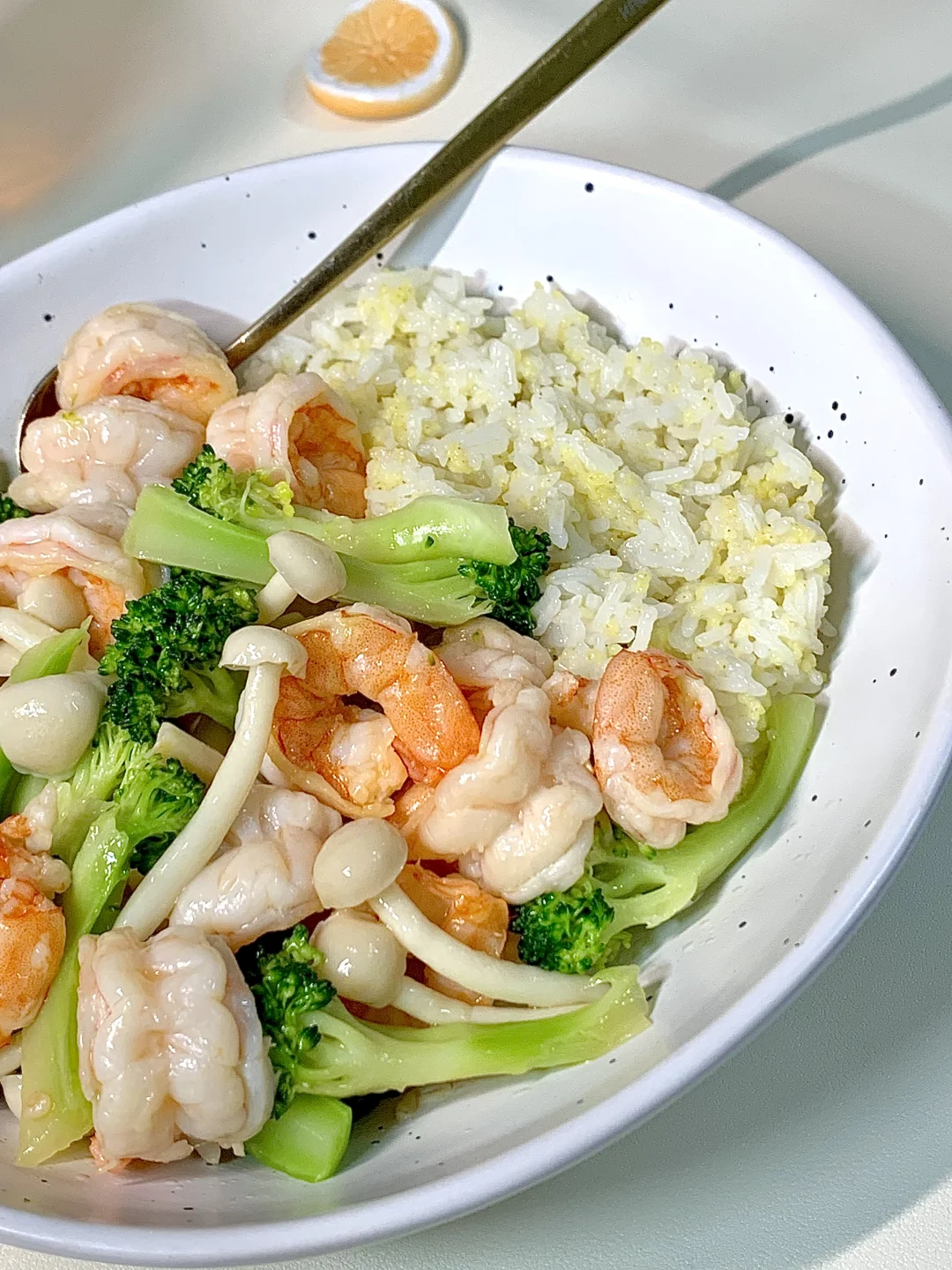 今晚吃西兰🥦白玉菇和虾仁🍤加点粗粮饭泰香了,中午没好好吃饭,晚上就认真对待吧~着急忙慌的拍出来供大家品鉴,当作午餐也很合适,充足的膳食纤维、蛋白质和维生素,燃烧的身体很需要它们!!