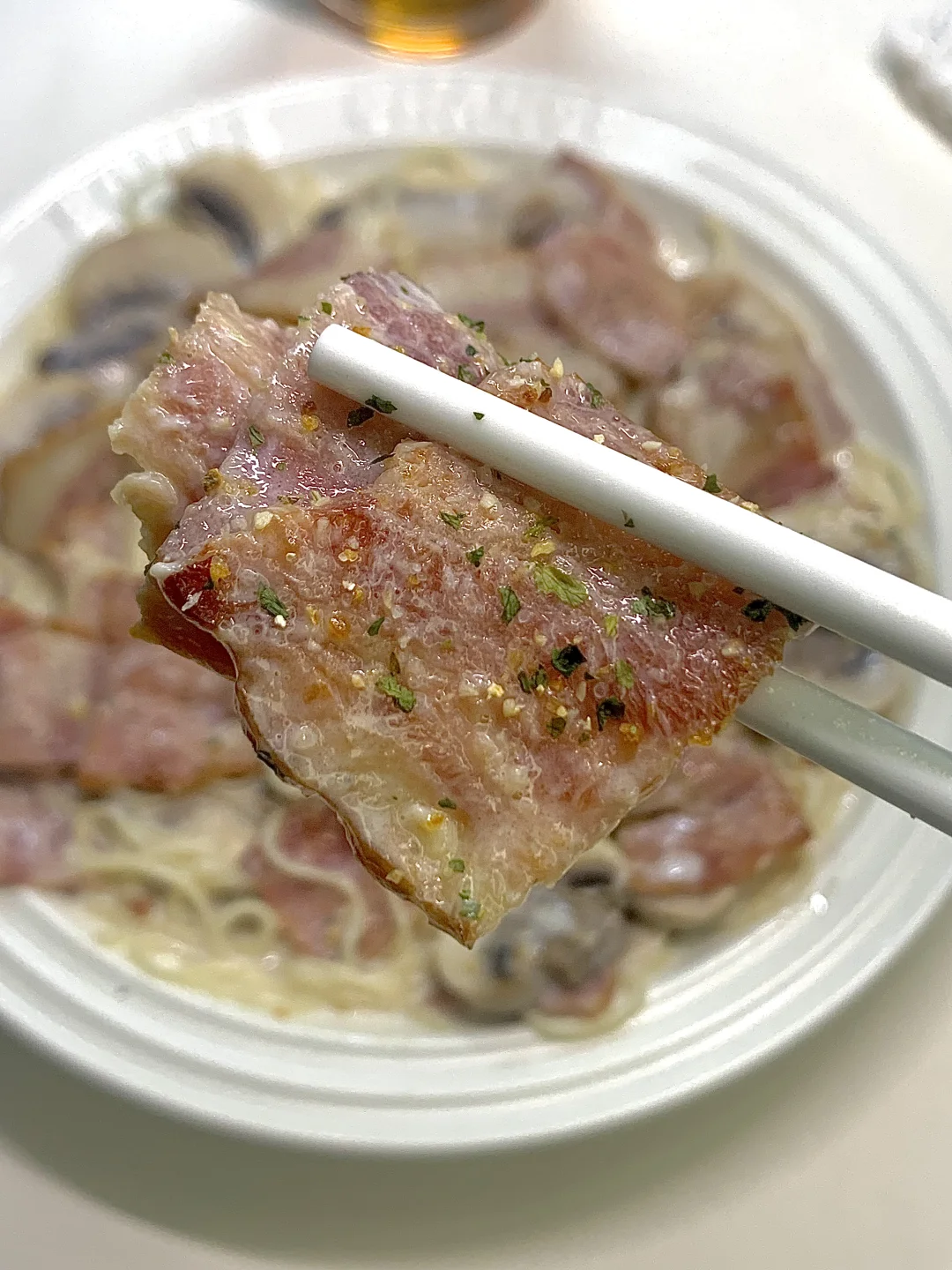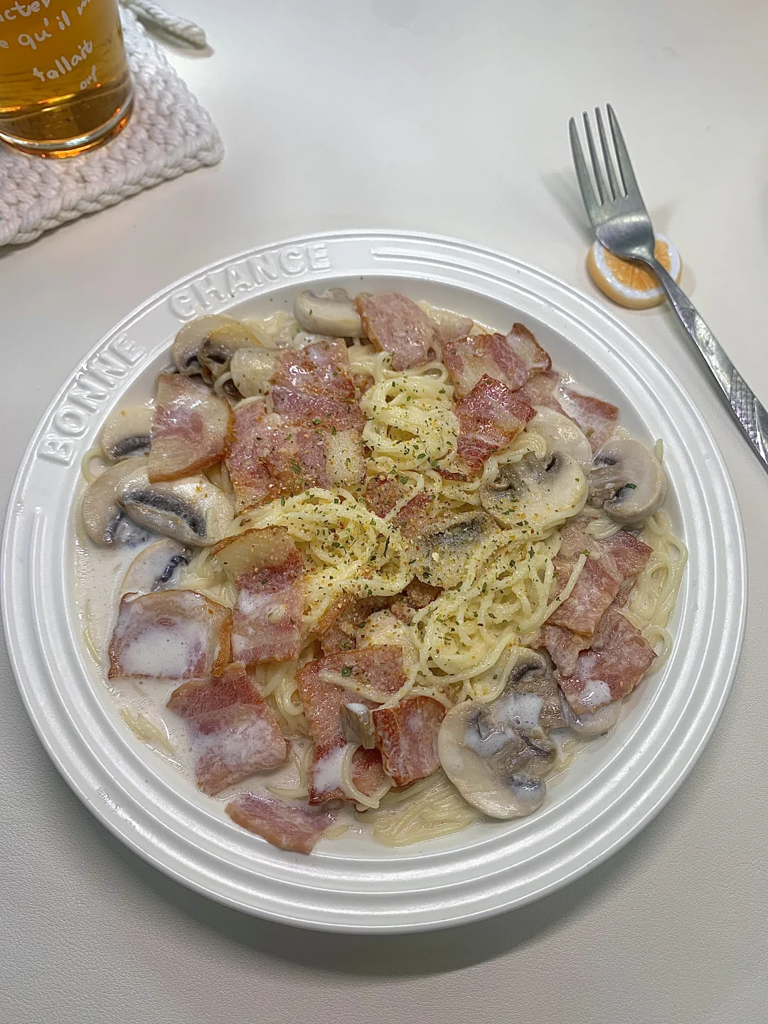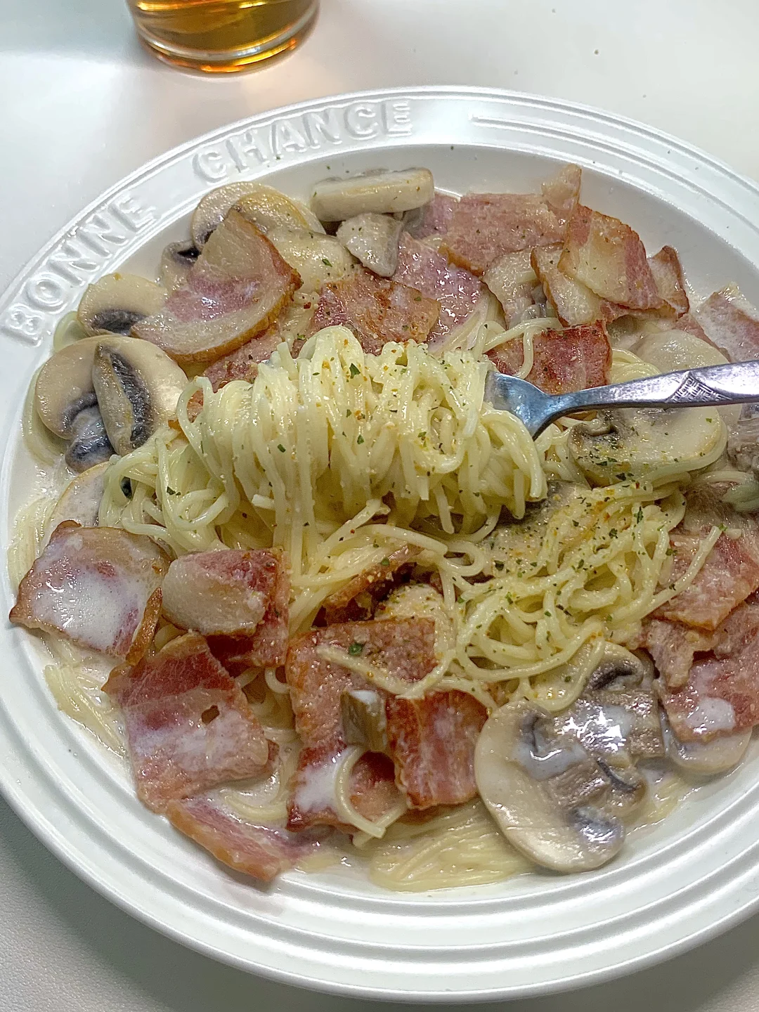 💕哈喽~小伙伴们我来啦! 今日份做了低卡版蒜香奶油意面~ 不夸张!奶香、蒜香都巨浓郁! 📝一起来看看做法叭~ .面条先煮熟过凉、培根🥓口蘑切片 .锅里放少许油爆香蒜未 .放入培根炒香加入口蘑炒软 .放适量盐和味精黑胡椒 .加入牛奶和芝士片煮开 .加入意面咕噜咕噜好香呀~ .出锅啦!