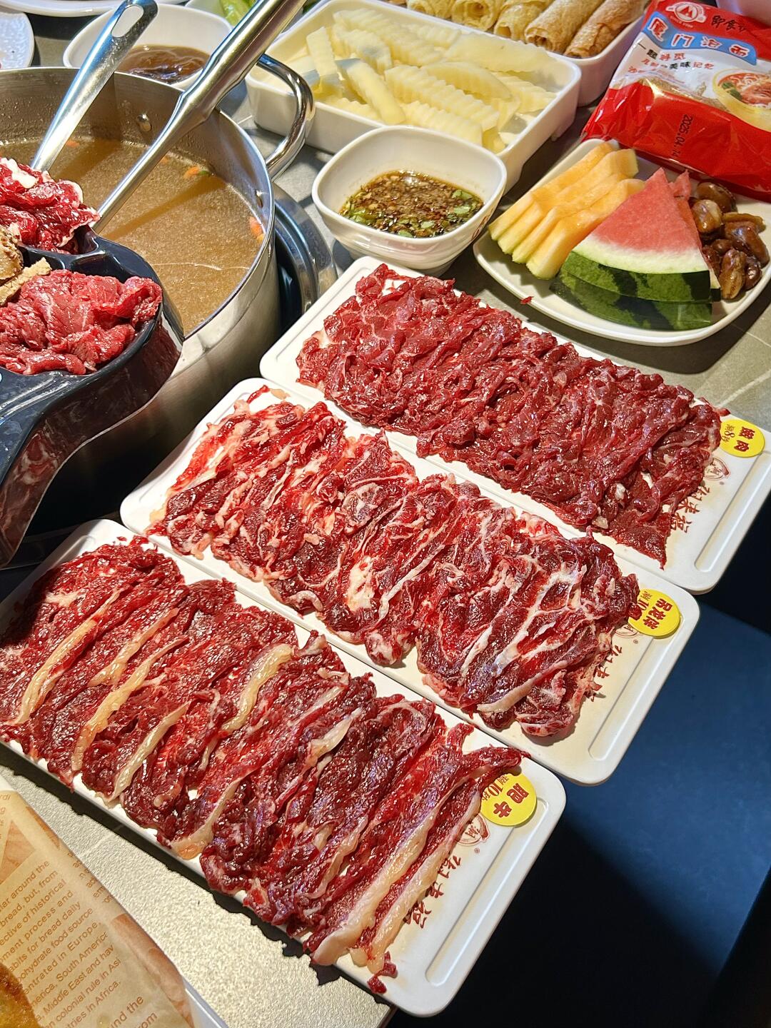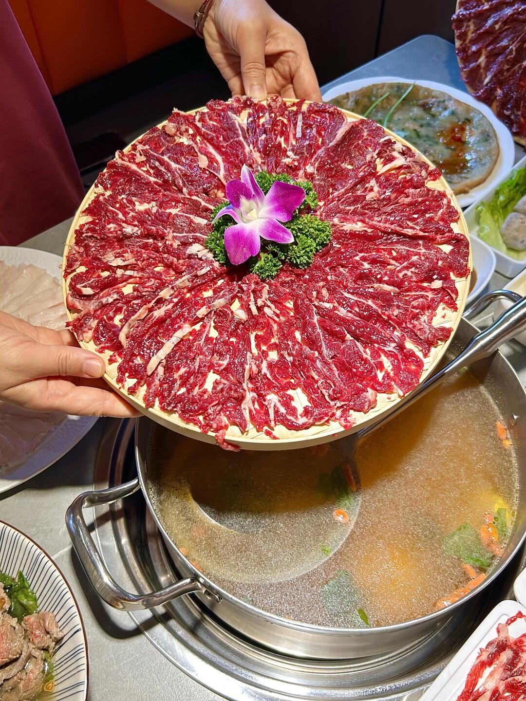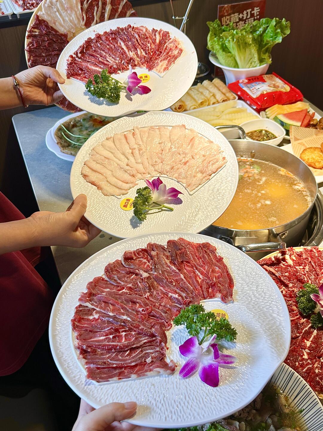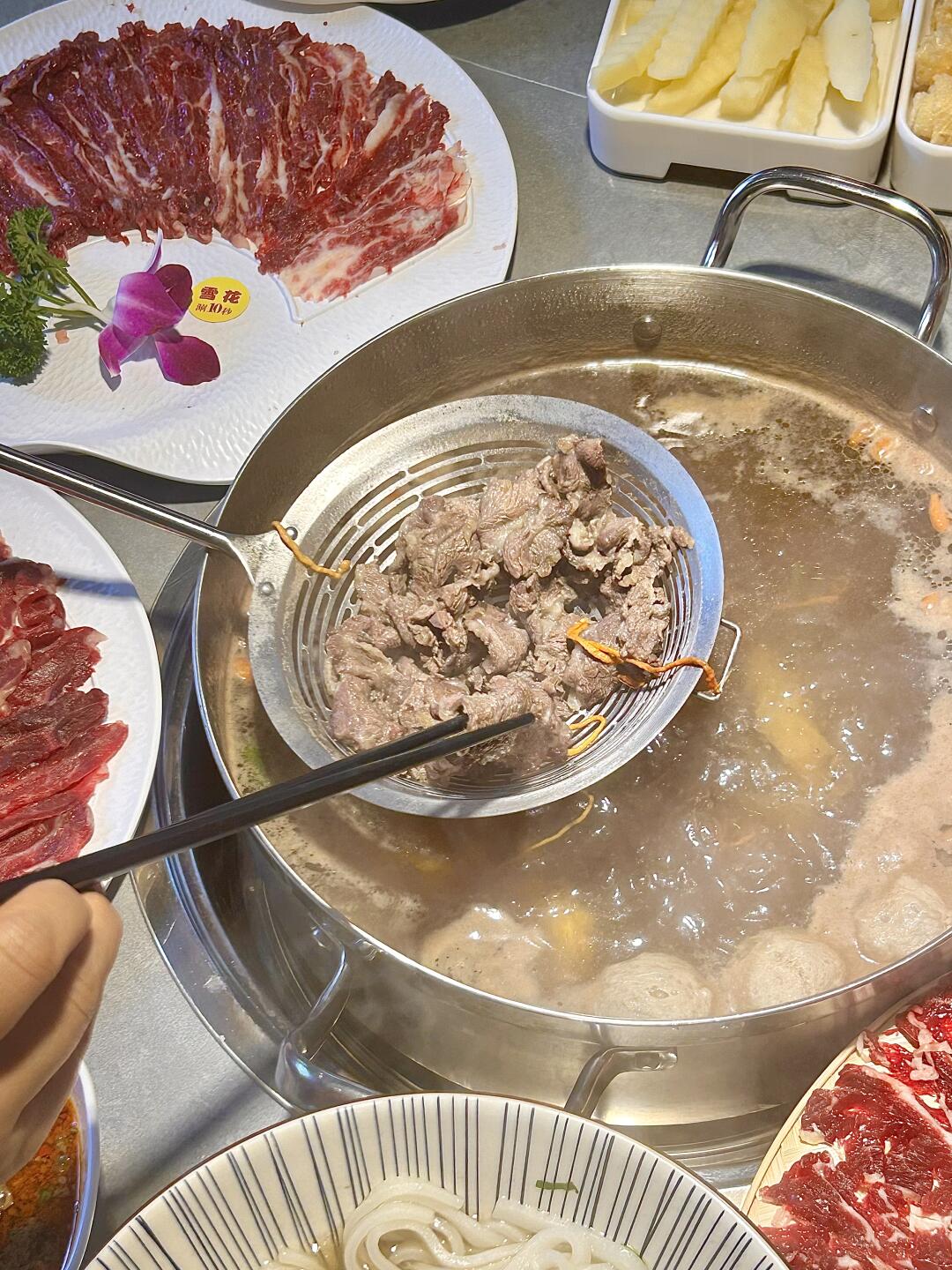 每一片牛肉都切得薄厚适中,纹理清晰。放入锅中轻轻一涮,入口即能感受到牛肉的鲜嫩多汁🤤真的太过瘾了!!