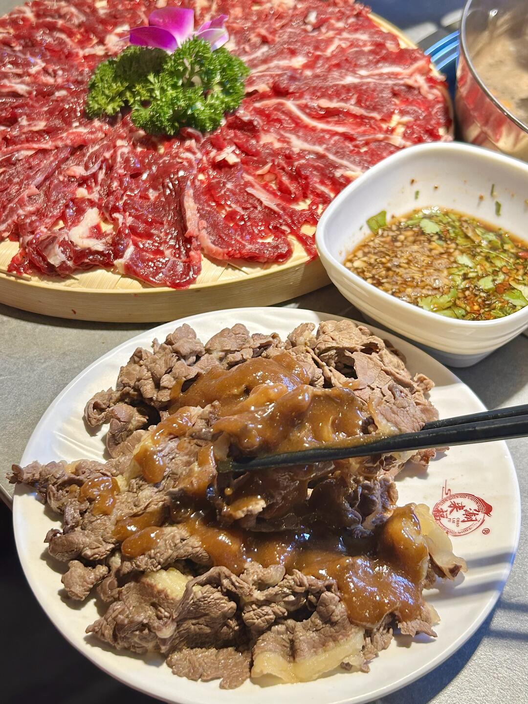 这个菜品超赞!各种部位的牛肉齐聚一堂👍🏻一次满足!!鲜嫩爽口!搭配沙茶酱汁真的好好吃