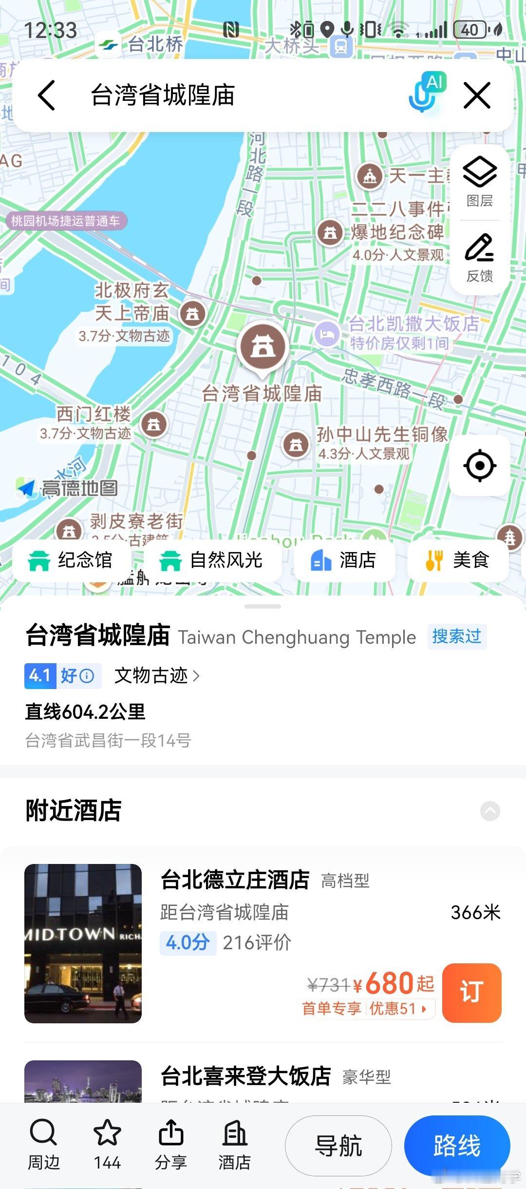 太赞了,高德上不仅各个景点都标注的清清楚楚,而且唤起导航也很丝滑,从台湾国际机场出发,无论是去台北的景区,还是跨市到高雄,高德地图都能很精准的规划导航路线。而且,这波高德提供的还是车道级导航,连红绿灯的点位都很精准,和现在大陆在用的功能和服务一模一样,每条街和路都清清楚楚。