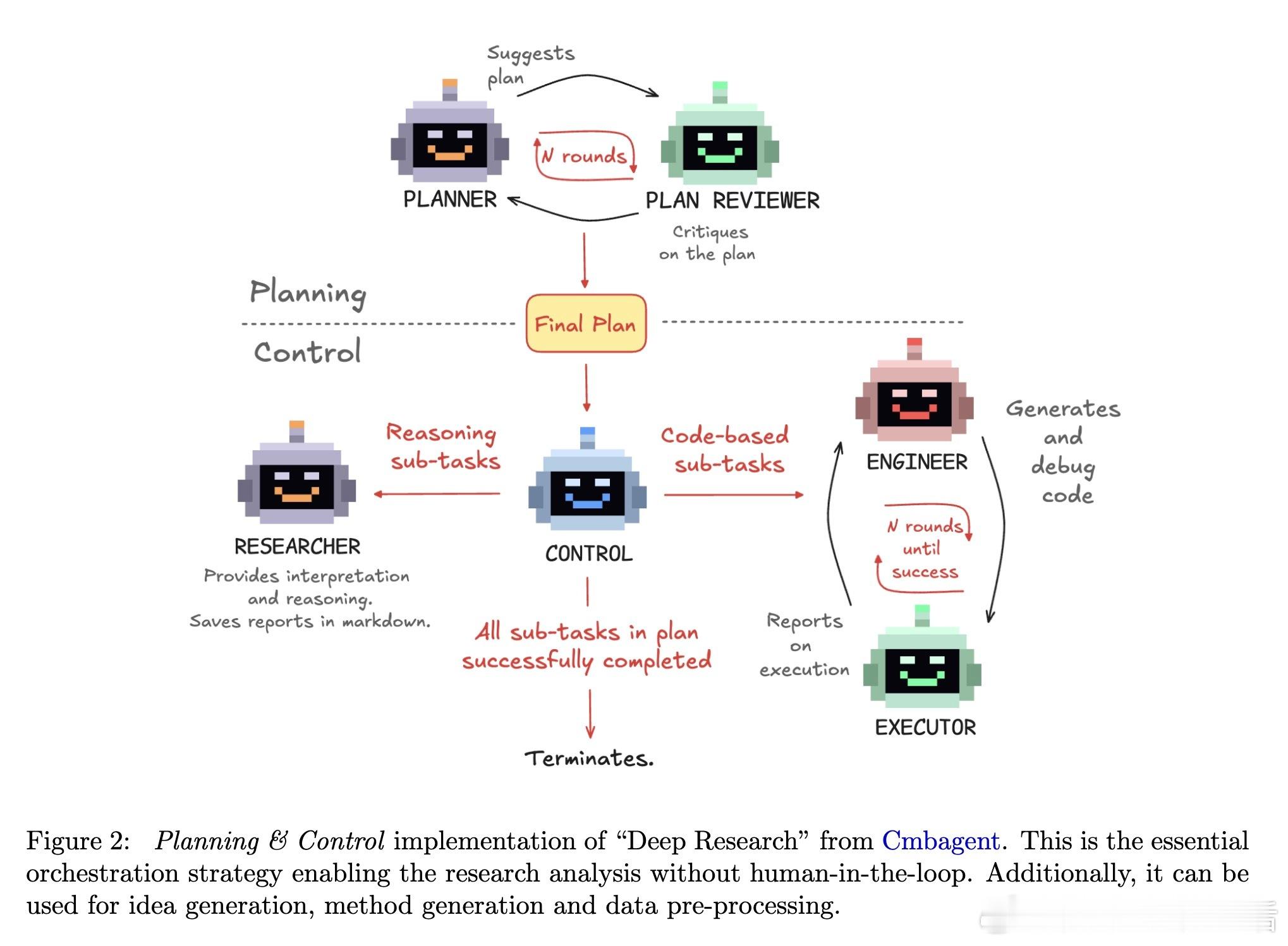 - 智能体通过AG2和LangGraph两个框架实现精细的任务分解与协作,支持规划与控制策略(Planning & Control),以保证复杂科研任务的系统化执行。