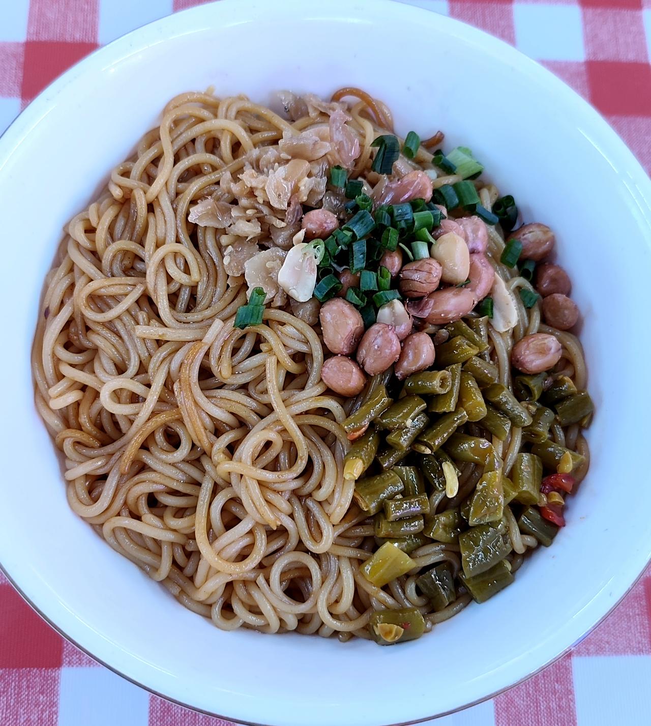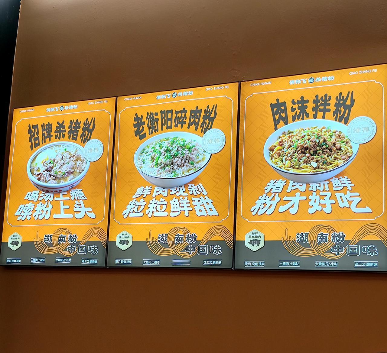 昨天中午因为家里没有WiFi信号了,我就去黄埔区泰景花园那边的中国广电办理业务,续16个月交了928元,出来后找了一间湖南人开的小店,名字叫悄张飞杀猪粉,我问店员是不是有不辣的粉,店员说有不辣的,我就坐下扫码点餐了,我点了一碟生菜,一碗老街拌粉,再打包一份小酥肉,价钱不贵,份量大,味道还可以。