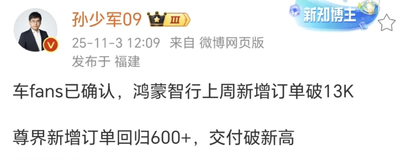 鸿蒙智行(不含尚界)现在每周的订单量基本上趋于稳定了,不过按目前的状态,还是太少了,毕竟四界可是有十余款车型,除了问界,其他几界还要加油。 至于为啥没有尚界,主要还是尚界大部分有自己专门的销售渠道,而且上汽也不怎么公布销量…