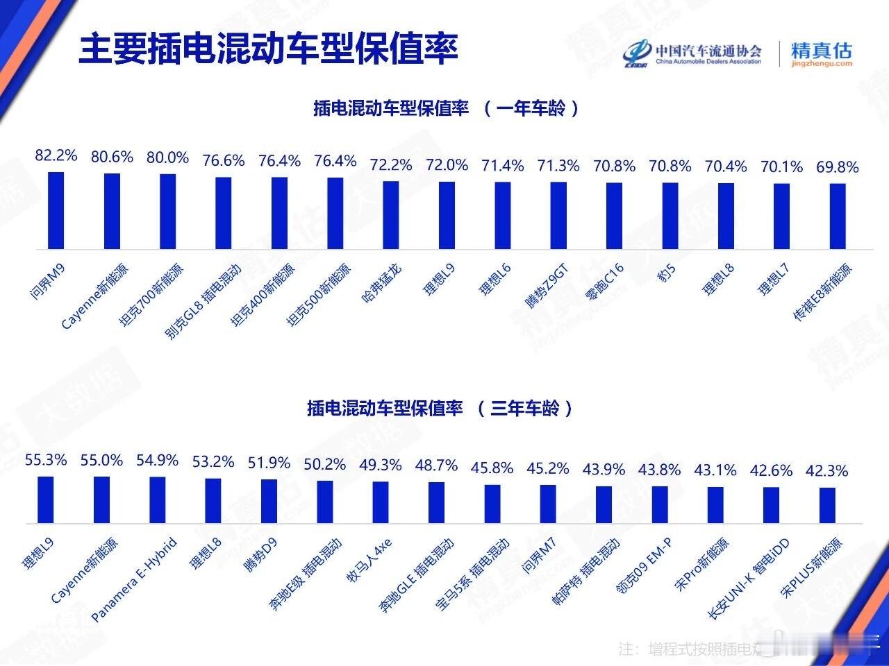 中国汽车流通协会和精真估联合发布的10月保值率数据,看了一下新能源车这两张图比较
