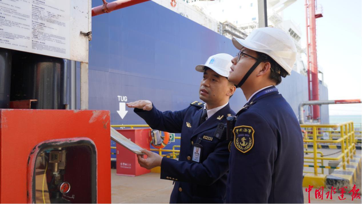 “在接到船舶进港计划后,我们及时与码头、船舶代理等相关方进行对接,梳理了船舶的吃水、载货量、航行计划等关键信息,并且结合近期的气象海况数据对靠泊作业的风险点进行分析研判,制定了‘一船一策’保障方案,明确了通航组织、安全监管、应急处置等各环节责任分工。”南疆海事局南疆南海巡执法大队副队长雷松虎告诉记者。