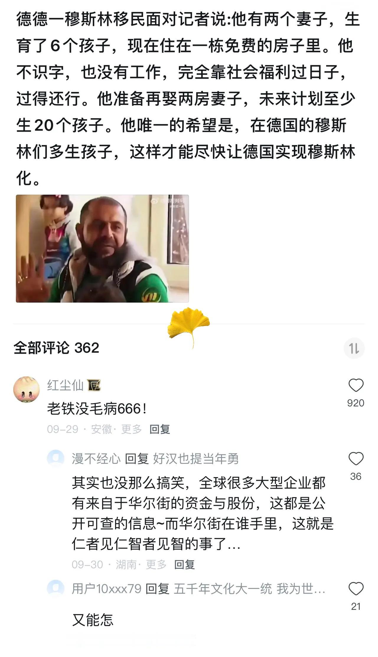 德国这位穆斯林移民的话,听着真让人五味杂陈! 俩老婆六个娃,住着免费房子,没工作不识字, 全靠福利过日子还嫌不够, 居然盘算着再娶两房。 要知道德国法律本就不承认一夫多妻,这些“额外”的家人, 大多靠着孩子母亲的身份蹭福利。 每月每个孩子能领近600欧元补贴, 住房也由政府买单, 难怪他不想工作。 可德国2024年福利支出都飙到1.3万亿欧元了, 本想靠移民解养老难题, 反倒养出了依赖福利的群体。 福利成了“躺平资本”, 而非融入跳板, 这才是最该警惕的。 你觉得高福利该有“底线”吗? 这种依赖福利的生活该被容忍吗? 评论区聊聊~