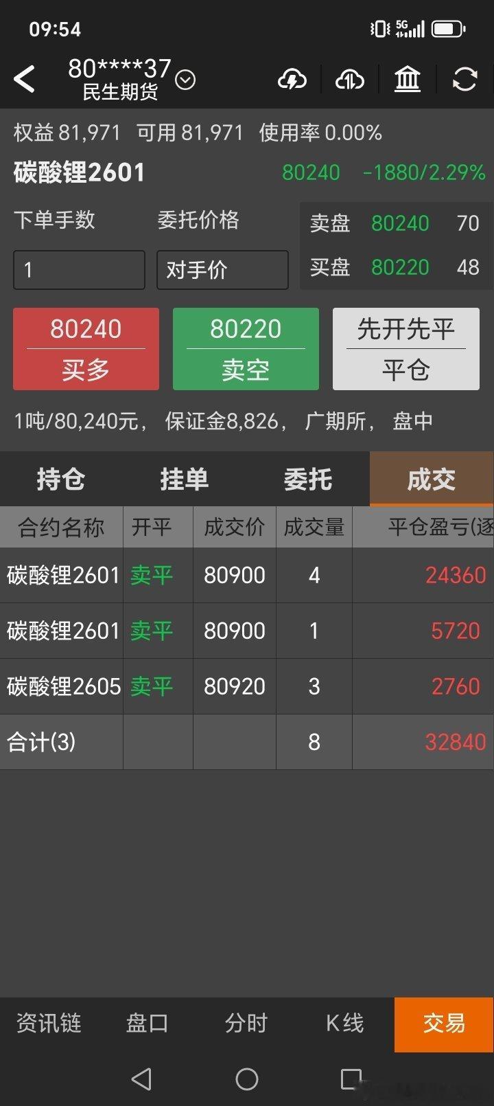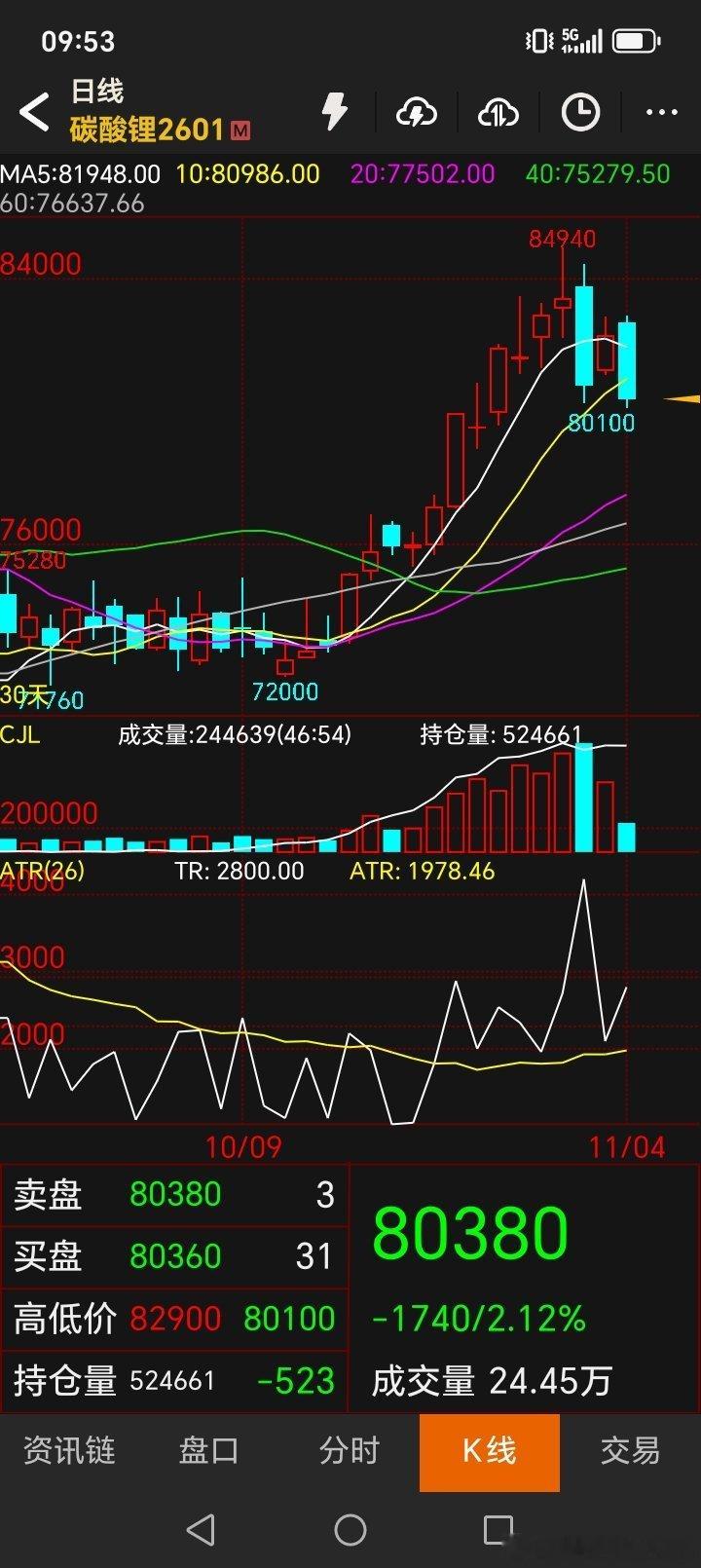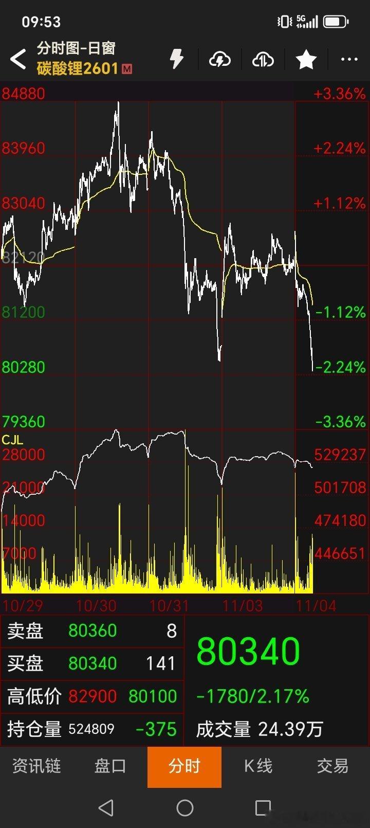 碳酸锂全部清仓,比上周最高峰回测了百分之20.出来等待