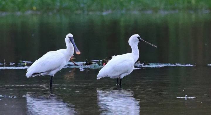 △黑脸琵鹭与白琵鹭(王卫国摄)