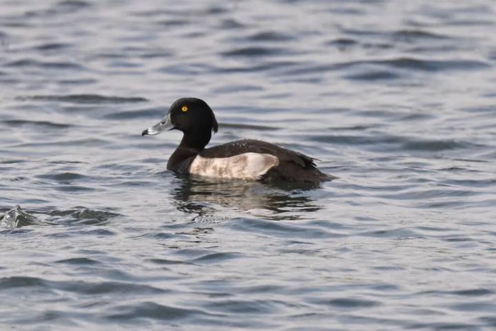 在西湖音乐喷泉附近,凤头潜鸭潜入水底觅食的身影引人注目。