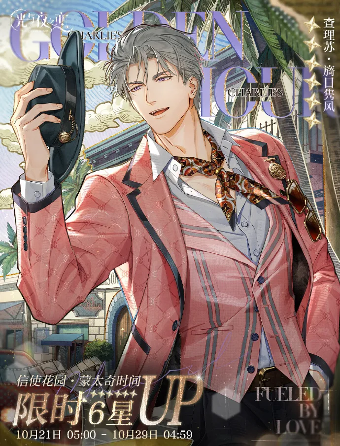 《光与夜之恋》是由腾讯北极光工作室打造的一款女性恋爱手游。游戏塑造了现实生活与魔幻元素交织的庞大世界观。玩家以设计师的身份,进入陌生城市后与各位男主相遇相知。查理苏是《光与夜之恋》中的男主角之一,查家的独子,世界四大财阀之一、NOVATEN药业集团唯一继承人。与玩家有婚约,现为光启第一人民医院烧伤整形科医生。