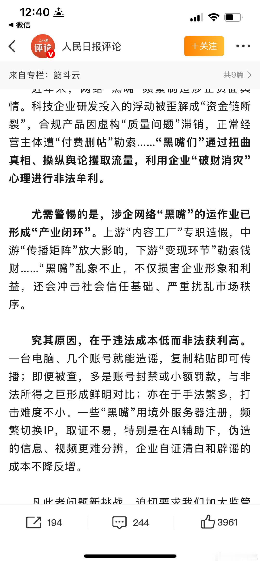 只有给企业创造一个好的创新环境,让他们能够安心地搞研发、做产品,咱们国家的创新才能越来越强,咱们的生活才能越来越好!这才是对中国创新的真正保护,也是对咱们自己未来的负责啊!支持企业专心搞创新,别让实干者耗在辟谣上,这才是对中国创新的真正保护!