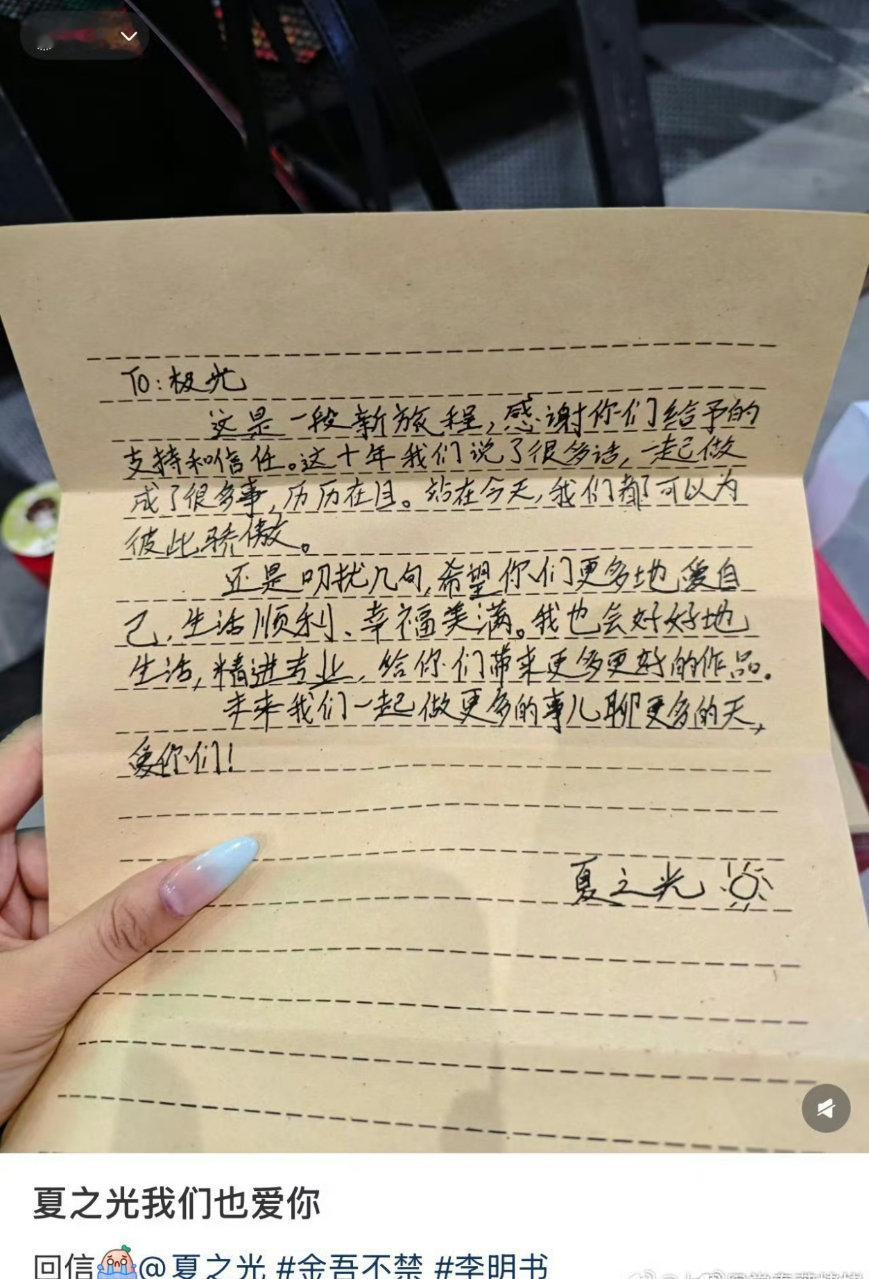 夏之光给粉丝写信夏之光给粉丝手写回信夏之光对粉丝真的很真诚