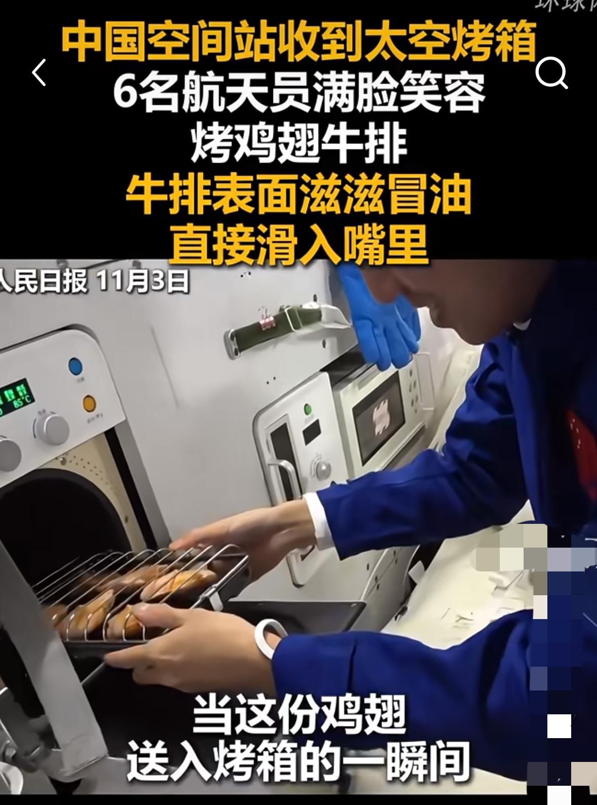 咱中国航天员也太会了!把太空变成“美食直播间”,直接整出烧烤派对,烤鸡翅油光发亮的样子,隔着屏幕都能馋哭人,这波操作直接让全世界看呆了! 隔壁还在慢悠悠实验烤饼干,咱这儿已经实现“太空烧烤自由”,航天员眼睛发亮盯着鸡翅的模样,像极了家里聚餐等开饭的样子,满是烟火气。不愧是种花家儿女,到了太空都没丢“吃货本色”,把日子过出了家的味道。 话说回来,既然能烤鸡翅,那下次能不能安排上烤鸭?你觉得航天员要是在太空吃烤鸭,会用什么特别的方式?