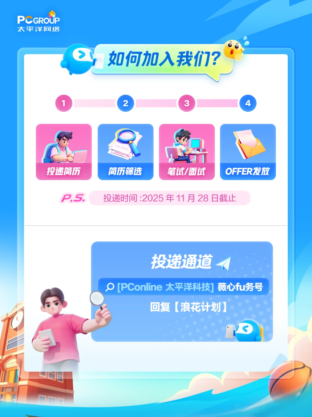 🔔叮! 大学生们,你有一份校园大使offer待查收! 🌊太平洋网络「浪花计划」2026校园大使开启招募啦 🏃只要你好奇新科技、喜欢数码,这个机会别错过! 成为校园大使,你将: 🌟打造个人IP,解锁博主/主播新身份 🌟校招绿卡+实习证明,简历直接加分 🌟数码新品优先体验,走在科技前线 🌟深入名企 & 行业展会,拓宽视野 🌟积分换礼+多元薪酬,能力变现两不误 ❗投递方式详见P4 期待与你一起在这个时代掀起属于我们的浪花~