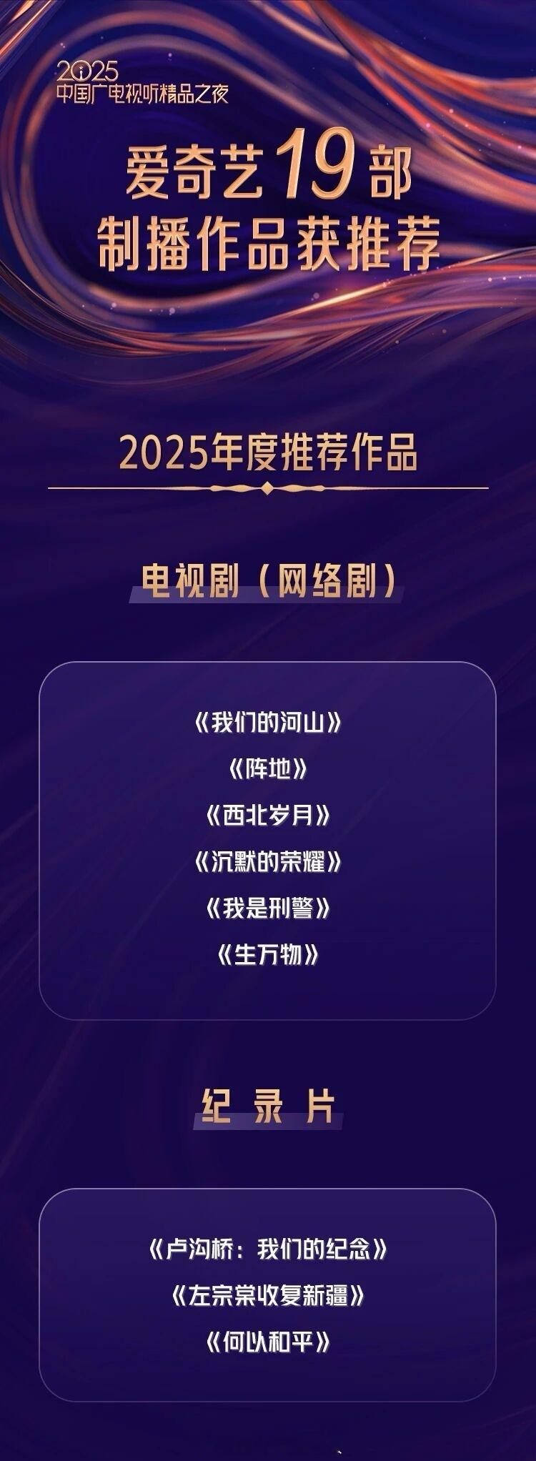 🥝这次在2025 中国广电视听精品之夜的表现好亮眼!足足有19部作品入选推荐名