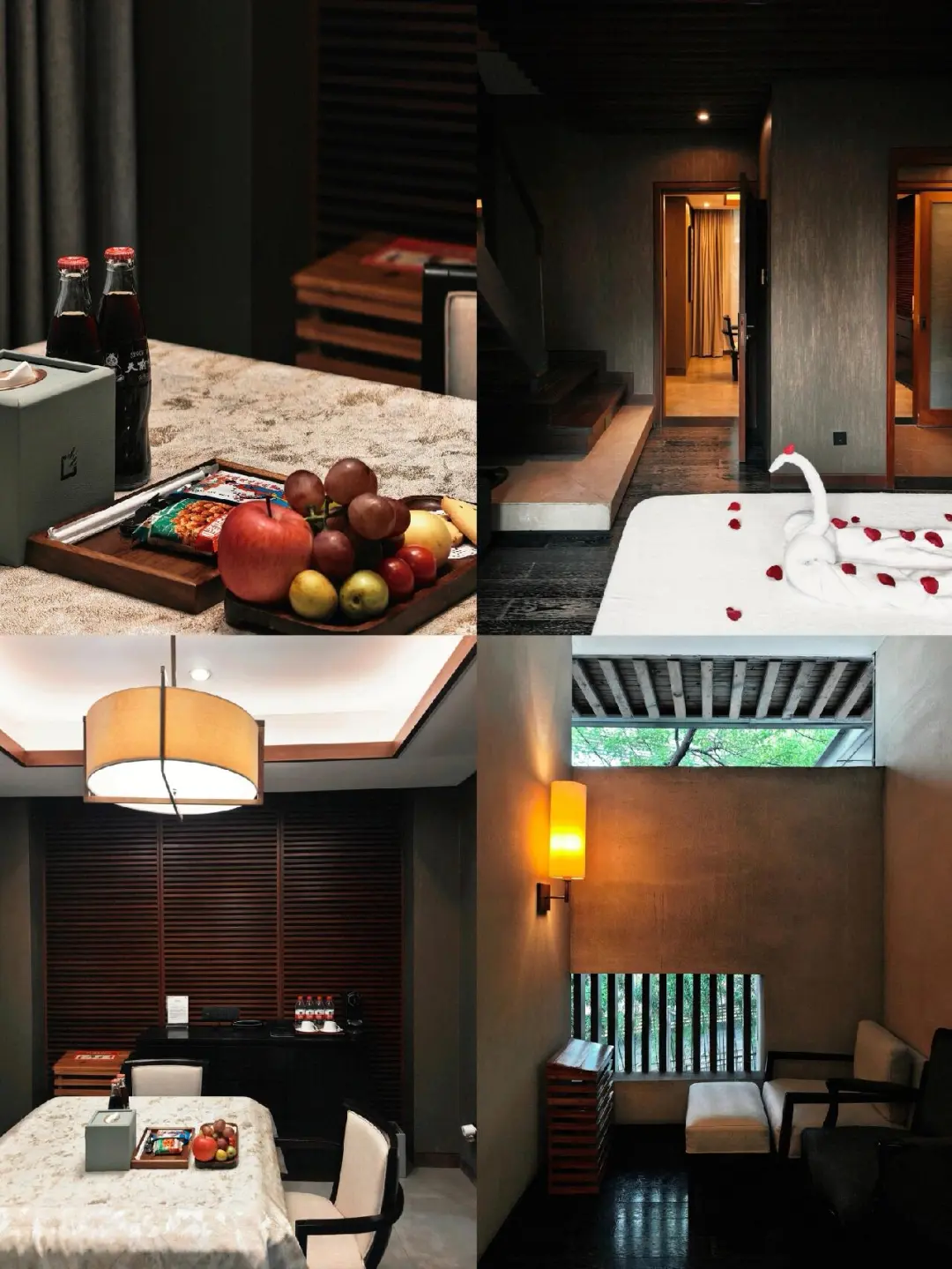 酒店仅有13幢私汤别墅,私密性极佳。本次入住跃层汤屋别墅,房间100平,分上下两层,大量原木元素的运用,很有沉浸式泡汤的感觉。下层是客厅配有机麻,公卫和SPA室,值得一提的是这家少有的在公卫也用到了Toto卫洗丽。欢迎水果是配有重庆特色的渝味小吃,胶囊咖啡提供3粒,茶包是川宁,minibar全免费。