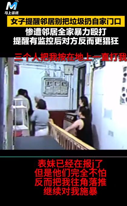 上海,邻居将垃圾扔在女子家门口,女子就说了一句:不要把垃圾扔在我们家门口,结果一个暴怒的老头出来拼命地推她,老头却说:你不要推我。老头的儿子出来,就揪着女子的衣领,往他们家拖,女子提醒他们门上有监控,结果换来了他们一家的拳打脚踢,还拿棍子打,即使民警来了,他们还给了女子一拳。 小李是个在上海打拼的沪漂,为了住得安稳些,在龙吴路11弄租了套房子。   作为独居女孩,安全是头等大事,她特意在门口装了监控,可没想到这监控没防住坏人,倒先拍下了邻居的糟心事。   不知从什么时候起,隔壁邻居总把敞口的厨房垃圾放在她家门口。   剩菜剩饭渗出来的脏水淌得满地都是,踩上去黏糊糊的,干了之后还会散发出一股恶臭,夏天更是招得小飞虫到处飞。   小李刚到上海,想着多一事不如少一事,每次看到都默默忍了,从没敢跟邻居提过。   2025年11月1号傍晚六点多,大几岁的表姐来看她,一进门就被门口的垃圾熏得皱起了眉。   看着表妹委屈的样子,表姐实在气不过,说要去跟邻居提个醒,免得以后变本加厉。   小李拦了一下,可表姐觉得只是礼貌提醒,不会有什么事,就径直敲了邻居家的门。   “您好,麻烦别把垃圾放我们家门口了。”表姐的话音刚落,门里就冲出来一个八十多岁的老头,二话不说就使劲推了表姐好几下。   表姐没防备,踉跄着退了两步,还没反应过来,就听见老头扯着嗓子喊:“你不要推我!”   这一喊,屋里又窜出来三个邻居,对着表姐和赶过来的小李用上海话骂骂咧咧。   两个女孩从没见过这阵仗,吓得不敢吭声,只能小声提醒对方:“我们门口有监控,都拍下来了。”   她们以为这话能让对方收敛,没想到反而点燃了对方的火气。   其中一个五十多岁的男人,浑身酒气,上来就揪着表姐的衣领往屋里拽。   表姐拼命挣脱,说要报警,对方却更嚣张了:“你报啊,敢打八十多岁的老人,看警察帮谁!”   表姐急得辩解,说监控能证明清白,可老头的儿子和另一个穿黑衣服的男人已经围了上来,两人合力把表姐往监控拍不到的墙角推。   小李想上前帮忙,被一个女人死死拦着。   她看着表姐被推到墙角,一个男人掐住表姐的脖子按在墙上,表姐蹲下来躲,又被三个人按在地上拳打脚踢,有人还从角落里捡了根棍子往表姐身上抽。   表姐蜷缩在地上,只能用手抱着头,疼得直哼唧,却不敢反抗,对方是几个大男人,自己根本没有还手的余地。   小李吓得浑身发抖,一边大喊救命,一边赶紧报警。   直到她喊出“已经报警了”,那几个人才停手。   两个女孩慌忙躲回屋里,可心里的恐惧一点没减。   警察来了之后,这家人的嚣张气焰半点没消。   一群人围着两个女孩,一口咬定是表姐先打了老人,集体做伪证。   更过分的是,其中一个男人当着警察的面,突然冲上去给了表姐一拳,把她推倒在地。   表姐疼得在地上叫,说要去验伤,对方还嘲讽她“装什么装,八十多岁的老人才该验伤”。   后来120来了,表姐被送进医院,小李陪着她录口供到凌晨两点。   警察说要找打人用的棍子当证据,她们又硬着头皮回楼道里找,把找到的棍子交给了警方。   现在案子虽然立了,但两个女孩再也不敢住那儿了,哪怕损失押金和房租,也连夜找中介退了租。   表姐直到躺在救护车上,确定自己安全了,才敢把憋了一路的眼泪流出来。   很难想象,在上海这样的大城市,两个女孩只是提醒邻居别乱堆垃圾,就遭到几个大男人的围殴,甚至警察在场还敢动手。   更让人寒心的是对方的反咬一口和集体伪证,仿佛做错事的不是乱堆垃圾还打人的他们,而是提出提醒的受害者。   这种以多欺少、蛮不讲理的行为,不仅伤了两个女孩的身体,更给她们留下了心理阴影,让她们对异乡的安全感荡然无存。   这种邻里间的欺辱,根源在于施暴者骨子里的蛮横和对规则的漠视,觉得对方是外地女孩、人单力薄就可以随意欺负。   可他们忘了,监控能还原真相,法律更不会纵容暴力。   不管年纪多大、人多势众,只要动了手,就要为自己的行为付出代价。   这起事件也该给所有欺辱者提个醒,仗势欺人终会自食恶果,文明社会里,从来没有“拳头大就有理”的道理。