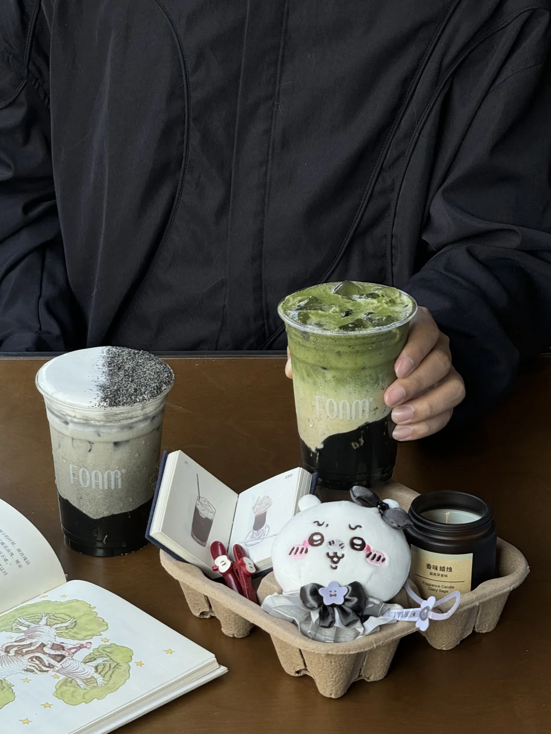 黑芝麻抹茶鸳鸯,好浓稠的黑芝麻喝起来很结实!!