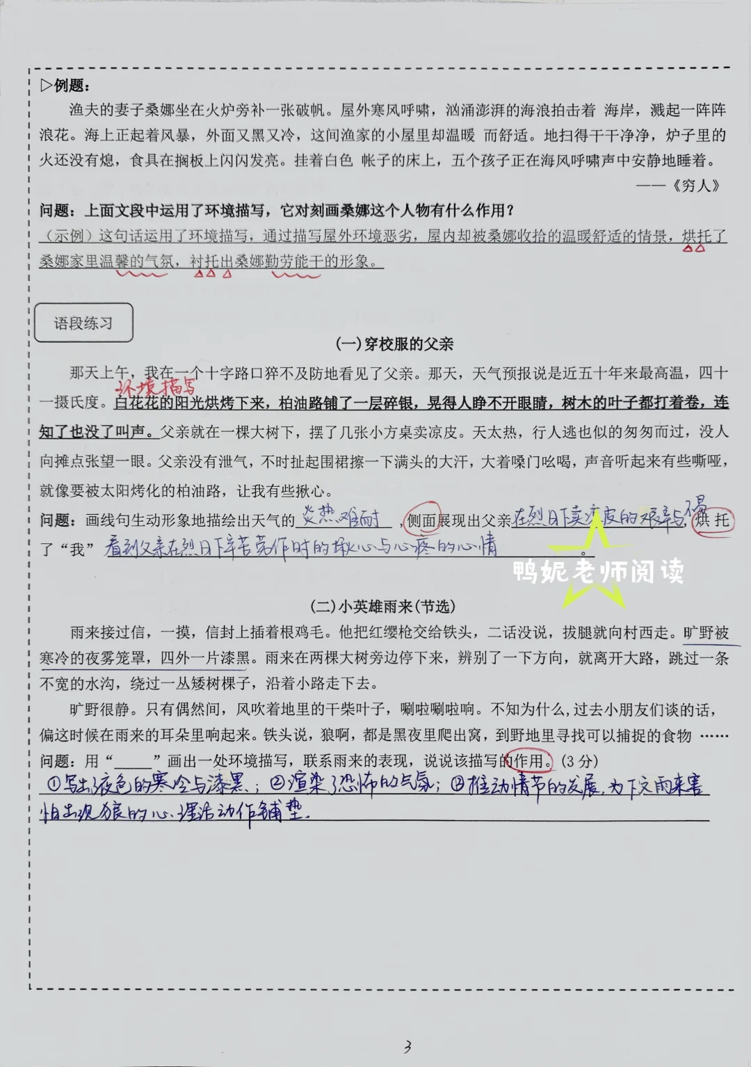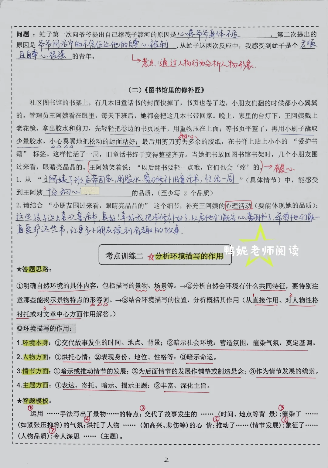 六上期中考试一定要抓这几个阅读考点!第四单元的主题是“小说”,其中的阅读考点相对集中也有一定难度。 一共四个高频考点👇 🔸考点一:分析人物形象 🔸考点二:分析环境描写的作用 🔸考点三:判断描写方法,分析其作用 可以这样给孩子们训练: [一R]先总结考点,再结合例题给孩子们讲解答题思路, [二R]提供答题模板,讲清楚得分点; [三R]进行经典语段的练习,巩固知识点。 (‼️答题模板的部分可以利用早自习让他们熟读巩固)