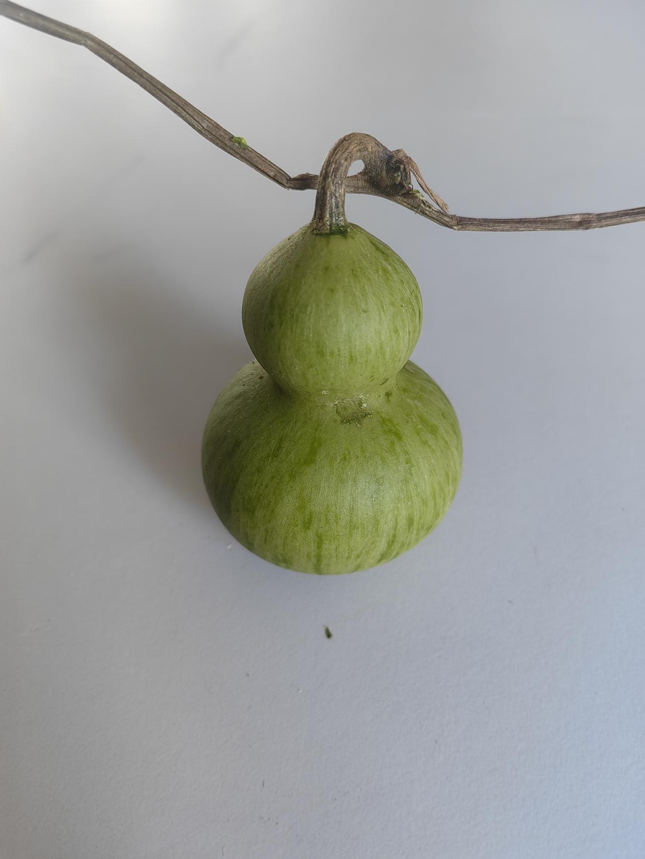 晒图笔记大赛以前见过很多文玩葫芦,前两天去亲戚家,发现他家种了很多小葫芦,出于好奇挑了一个,才发现原来葫芦不是自然在藤上变黄的,需要先把葫芦表皮打掉再晒干,我的葫芦有点小瑕疵,不知道晒干后能不能打磨掉。