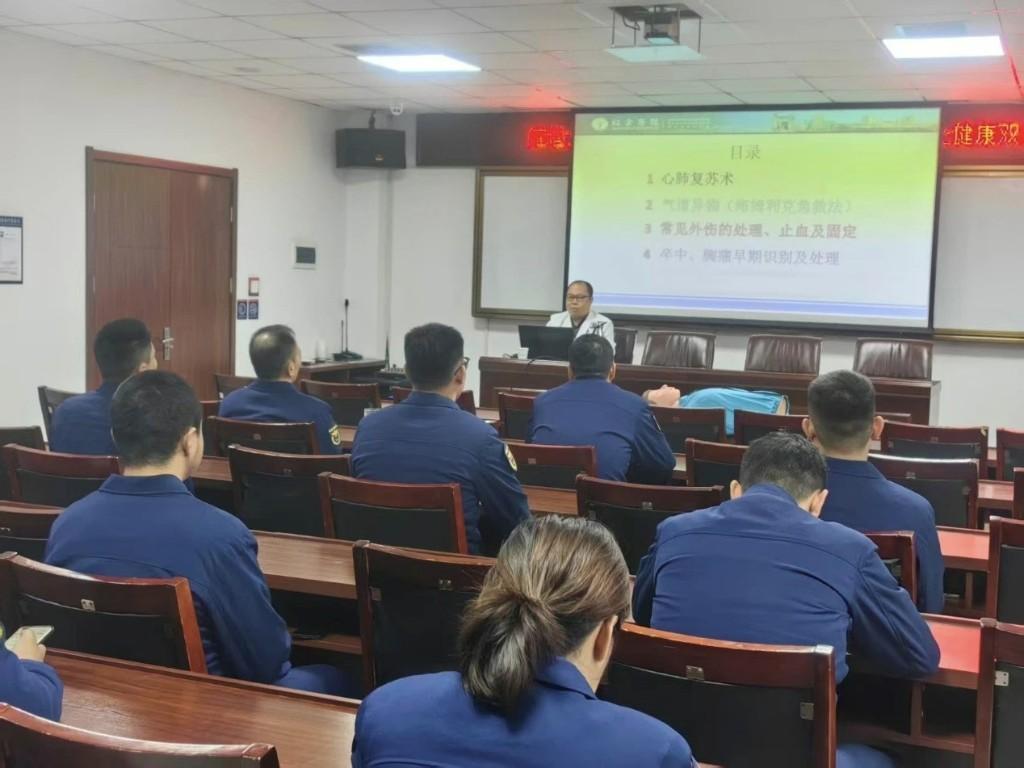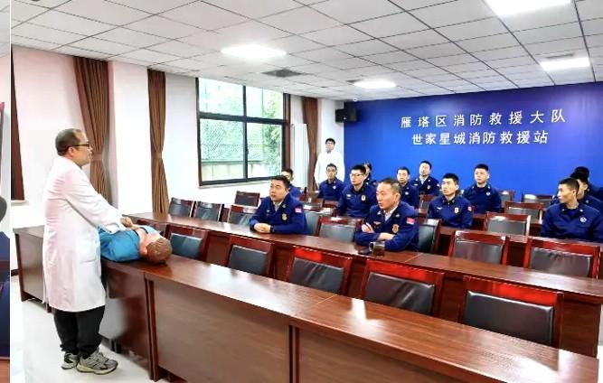 三秦都市报-三秦网讯(记者阮班慧)为强化消防救援人员现场急救能力,筑牢应急救援生命防线,近日,西安市红会医院工会充分发挥桥梁纽带作用,精准对接消防救援实战需求,统筹部署,来到西安市雁塔消防救援大队和世家星城中队,为全体救援人员上门培训急救知识和技能并展开健康义诊活动,将专业医疗服务和温暖送到“火焰蓝”身边。