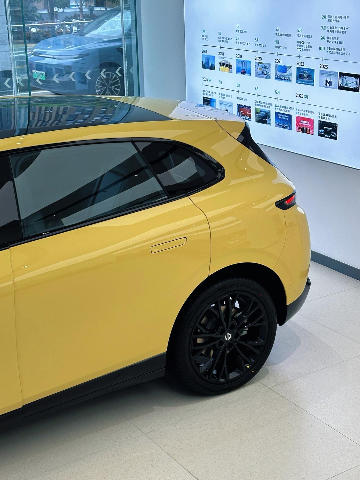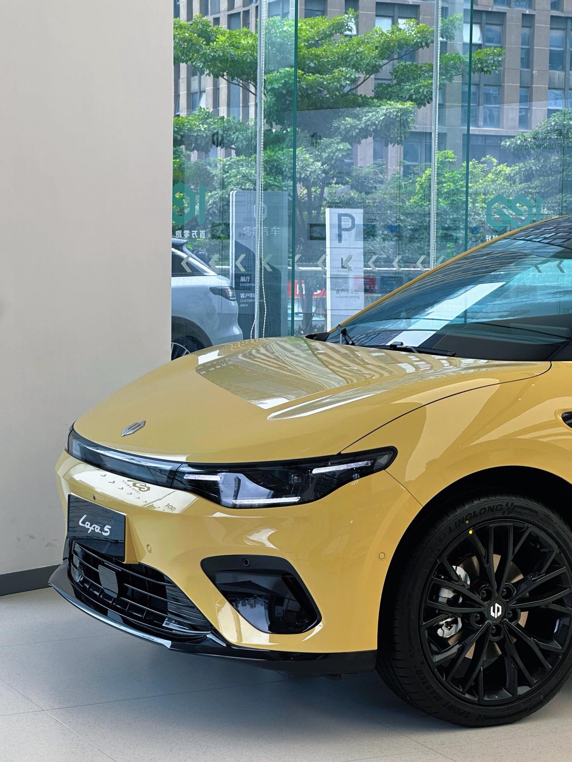 零跑Lafa5,门店实拍,好看吗? 今天去看零跑Lafa5,视频马上到 小车,定位运动轿跑 车内空间还行,长4430mm,轴距2735mm 三段式大灯组,熏黑饰板装饰;搭配同级唯一的无框车门、纯平侧窗设计;前盖设计低趴,风阻系数低至 0.256,19 英寸抗震运动轮毂为标配。 外观颜色提供(2个专属色)电掣黄、风驰灰、星夜蓝、摩根粉、星河银、金属黑~ 整体感觉还不错~【来自懂车帝车友圈】