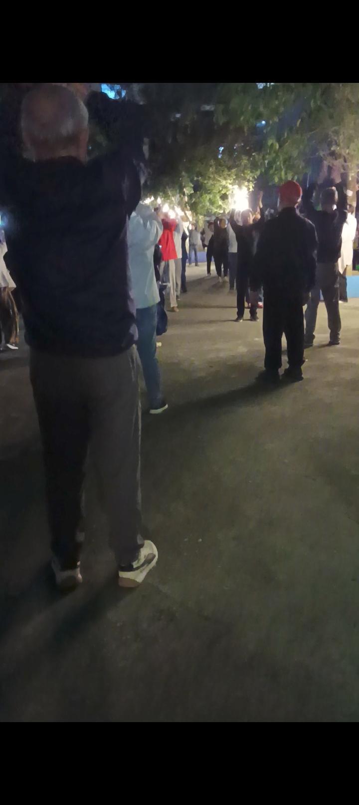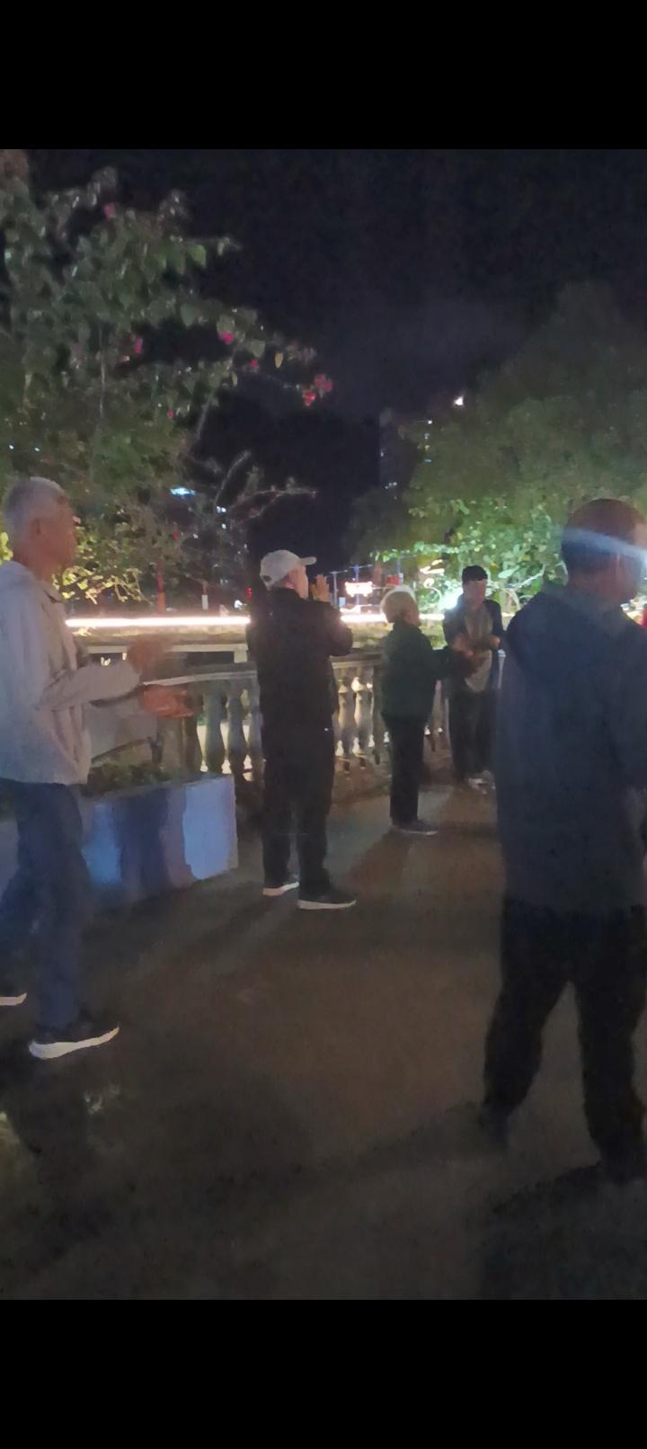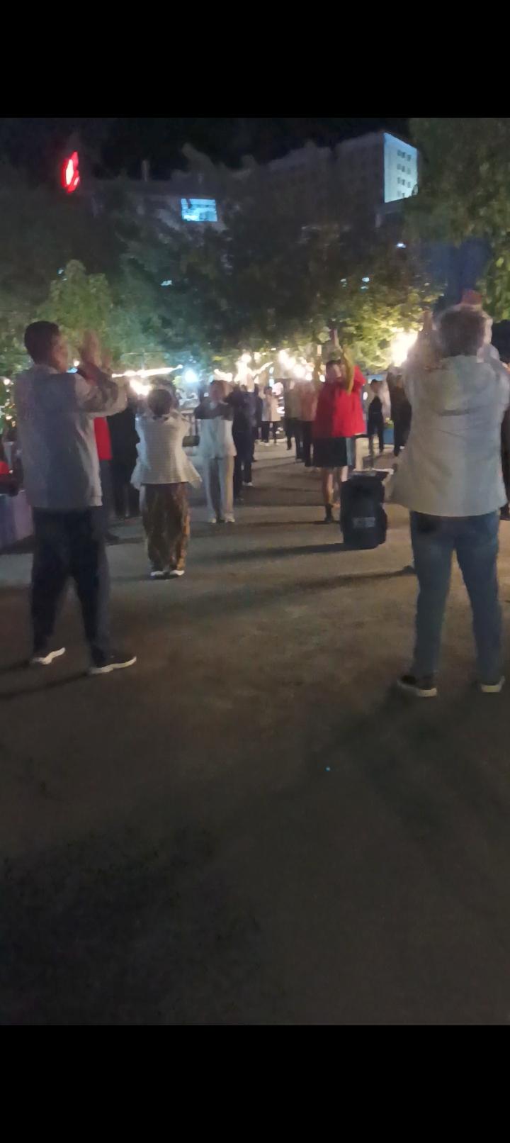 巴马足拉屯的佛歌拍打操 一两百人参与,太受欢迎了 今天是我和老伴来到广西巴马长寿乡的第7天。 这两天没到晚上我们就会步行三四百米过桥到足拉屯的文化广场边上参与八段锦和拍打操。 这支队伍的创建者应该是图片中的两位红衣老师。 在今天这样只有十五六度的夜晚,女老师穿着短裙,足以证明坚持锻炼的益处。 由于场地有限,十几位康养人在公路边上仍然坚持跟练。 据周围人介绍这支队伍已经坚持了好几年。我们从内心里感谢两位老师的用心付出。 在巴马,像这样的锻炼和娱乐团队有很多。如果你来了,只要你愿意,就不会寂寞。