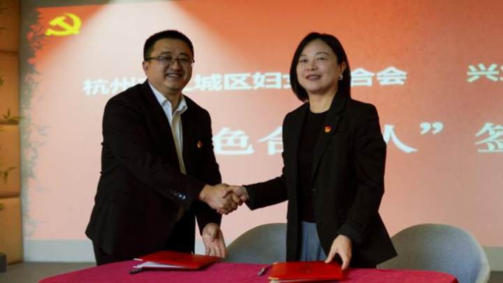 凤起支行负责人余平、上城区妇女联合会副主席俞浙晖代表双方就后续共建工作签署合作协议。