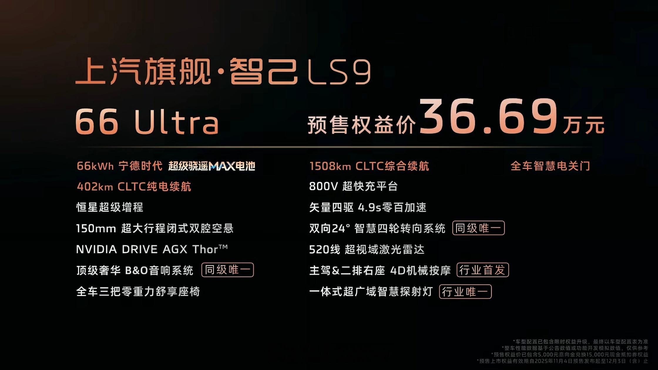 智己LS9预售权益价33.69w和36.69w,且为11月25日前锁单的客户兜底