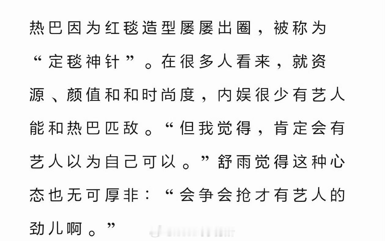 我寻思这不是艺人宣传说的吗 再不济爆料的也是狐厂 也不是热巴本人和团队说了 还有人说雌竞[笑cry] 而且热巴的出圈造型确实也很多呀我不想挨着迪丽热巴 对比太惨烈了