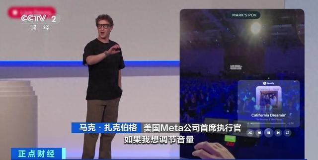 美国Meta公司首席执行官马克·扎克伯格:如果想调节音量,有个音量控制旋钮,旋转一下。拍照很简单,还可以浏览照片。