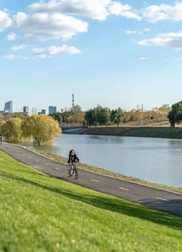 【超chill绿道!坝河绝美骑行🚴】北京范儿 📍推荐路线:东坝河边公园→焦庄桥→温榆河绿道 (金榆桥附近) →东坝金盏闸→坝河口蓄滞洪区 🗺️详情:起点从东坝河边公园开始,路边可以停车,从河边开始往机场二高速方向骑行,途经焦庄桥,从桥下穿过,不用过马路。穿过桥洞继续骑行路过第一座横跨坝河的桥,左转过桥后可以一直骑啦!道路的尽头还能遇到美丽的坝河口蓄滞洪区~ 内容