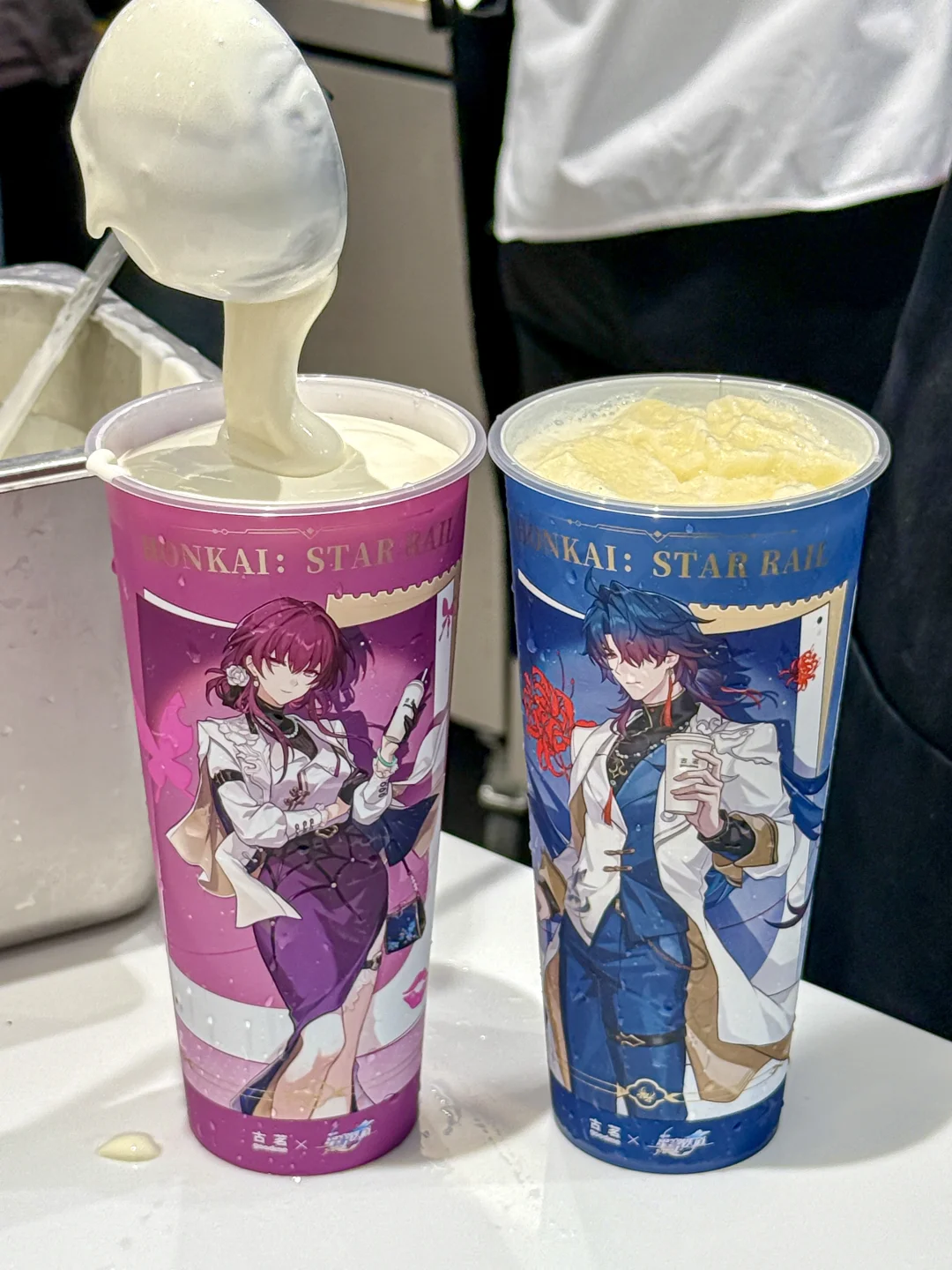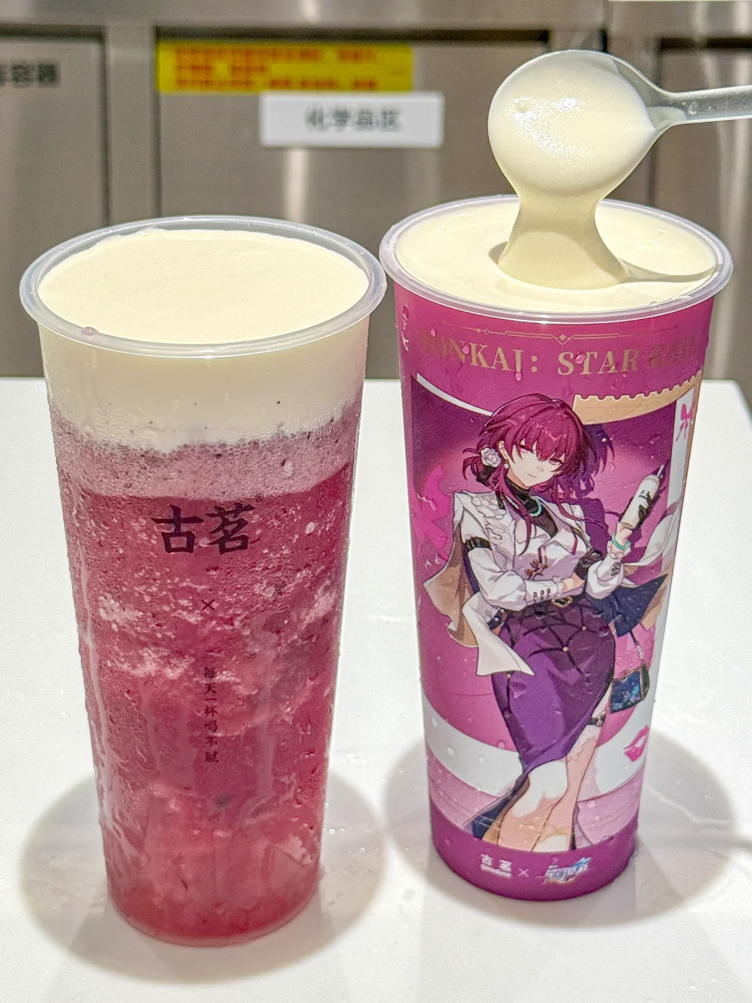 直接爆单了。。门口也超多人排队 店员剥葡萄、捣凤梨的手都出现残影了。。 原来是爆品超A芝士葡萄回归了!! 而且还出了和星穹铁道的联名,双厨狂喜了! ✔苹果金凤梨 酸酸甜甜的超级清爽解腻!!鲜切手捣凤梨搭配苹果! 果味十足!!每一口都像是在吃新鲜水果~ 这杯我最近喝停不下来! ✔超A芝士葡萄 果肉超多!!颗颗手剥葡萄搭配Q弹多肉~ 每喝一口都是满满的葡萄果香,再加上绵密的芝士奶盖~简直不要太满足! 招牌果然还是招牌啊~ 这两杯闭眼点!超级无敌好喝!!