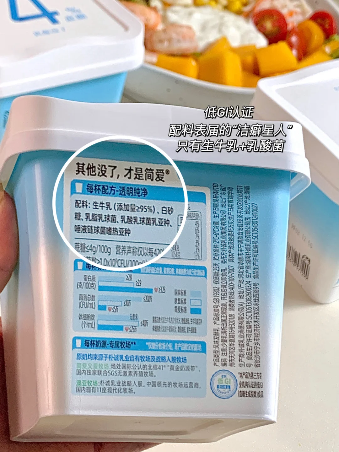 简爱轻食酸奶配料只有生牛乳、乳酸菌,0%真无糖味道不会减~