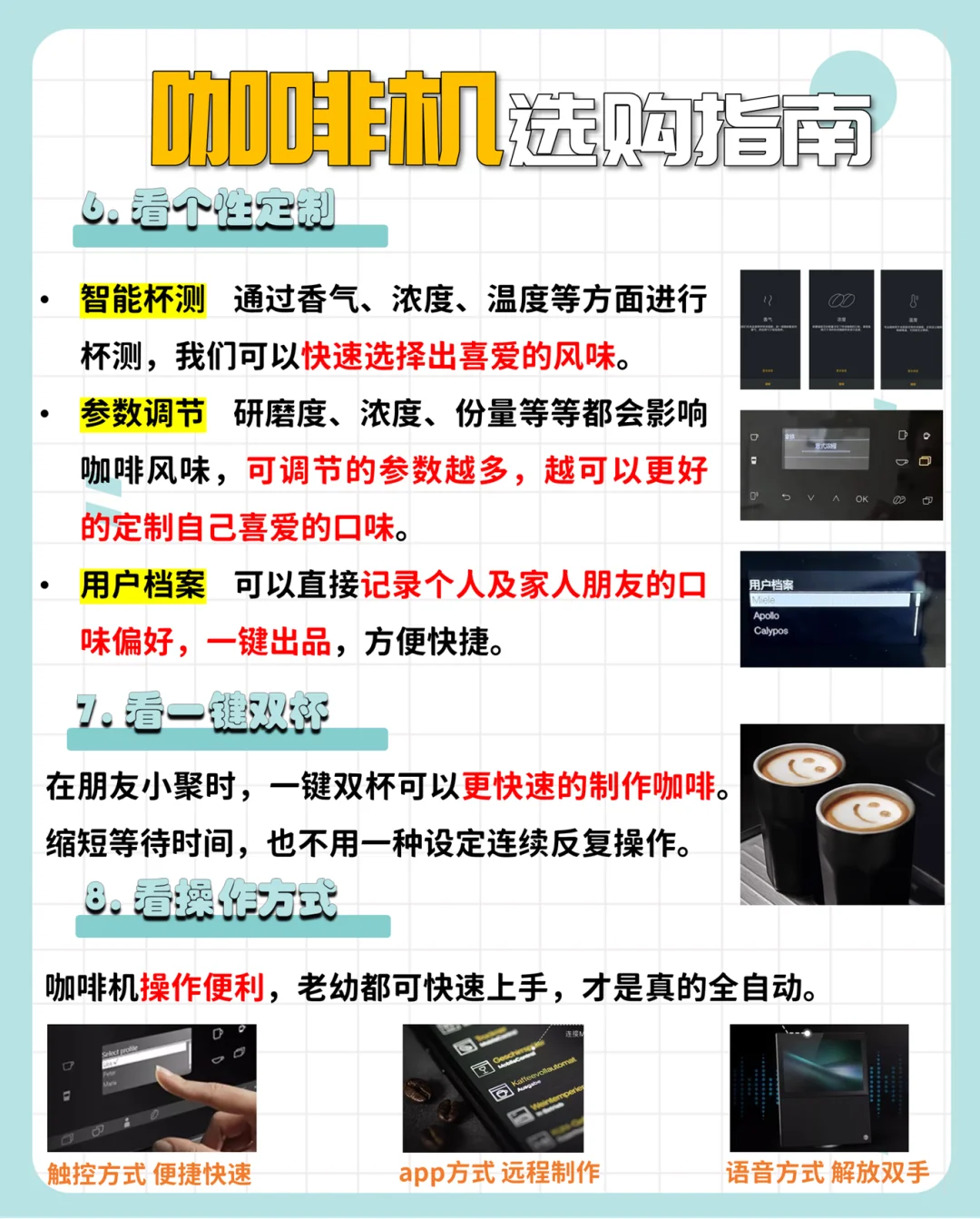 🔸全自动咖啡机:一键出杯,方便智能,适合时间不充裕的上班族、家庭和小型办公室用