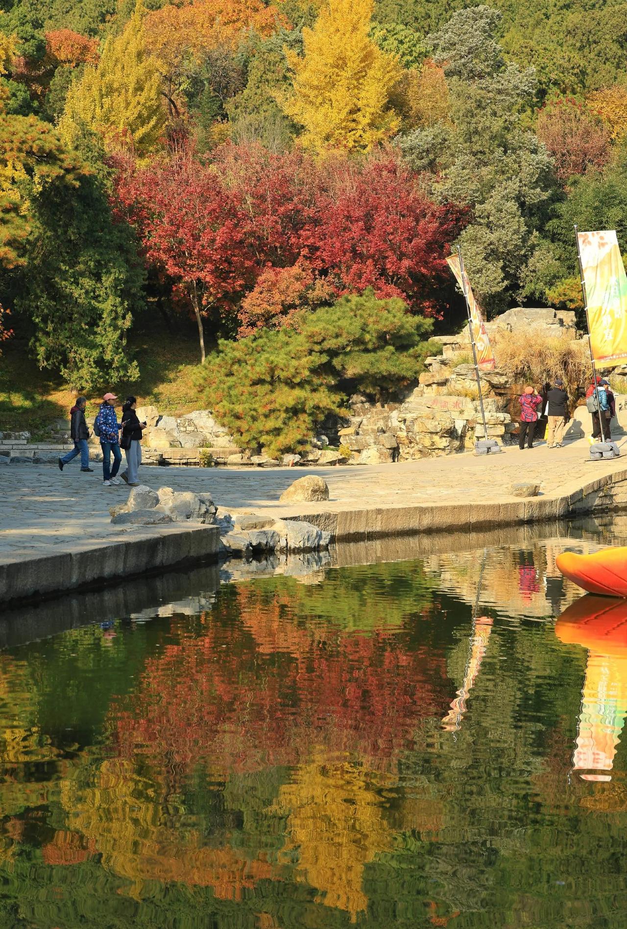 香山金秋赏叶指南:红透层林,邂逅限定秋韵。晴好天气与昼夜温差的加持,让香山公园的彩叶进入最佳观赏期,红、橙、黄、绿交织成绚烂画卷,12种彩叶树种各具风情,邀你共赴这场自然与人文的秋日之约。 核心观赏点位推荐 - 勤政殿:静宜园二十八景之首,殿前元宝枫是红叶“消息树”,橙红叶片与皇家殿宇的彩画、窗楞相映,古韵与秋华交融,是建筑与红叶同框的经典机位。 - 静翠湖:乾隆御赐“带水屏山”,湖畔彩叶渐染,湖中水鸟嬉戏,微风起时涟漪轻漾,秋色随波摇曳,宛如灵动水彩画。 - 翠微亭:静翠湖上行即达,可静坐品味“山林朝市两茫然,红叶黄花自一川”的诗意,亦可在百年银杏、白皮松旁打卡,感受古树与彩叶的碰撞。 - 香雾窟:俗称“平台”,地势高阔,晴日里可远眺京城全景,将漫山红遍与城市天际线尽收眼底。 - 眼镜湖:北门附近的清幽秘境,两潭圆湖架一桥,周围黄栌、枫树变色较早,色彩斑斓的林木与精巧水景相映,还能仰拍香炉峰景致。