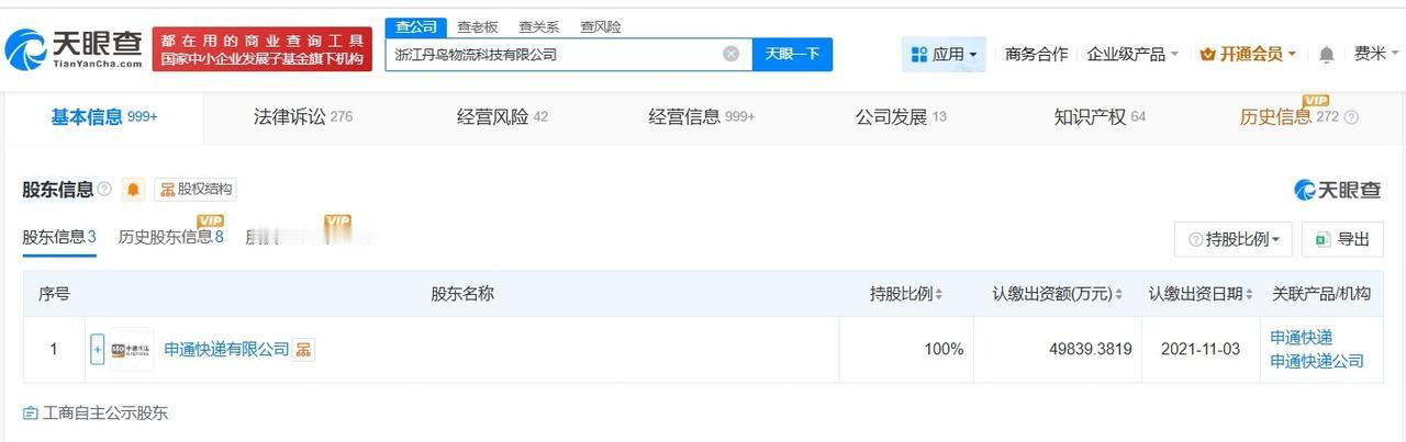 申通快递入股丹鸟物流完成工商变更 申通快递已全资持股丹鸟物流 天眼查工商信息显示,近日,浙江丹鸟物流科技有限公司发生工商变更,原股东阿里巴巴(中国)网络技术有限公司、浙江菜鸟供应链管理有限公司、杭州阿里创业投资有限公司退出,新增申通快递有限公司为全资股东,孙建卸任法定代表人、经理,周少华接任法定代表人、经理并担任董事,同时多位主要人员发生变更。 浙江丹鸟物流科技有限公司成立于2009年8月,注册资本约4.98亿人民币,经营范围包括快递服务、道路货物运输、食品销售等。 据媒体报道,11月3日,申通快递发布关于收购浙江丹鸟物流科技有限公司100%股权的进展公告,宣布本次交易已顺利完成交割,丹鸟物流已完成工商变更登记手续,正式成为申通快递全资子公司旗下的核心资产。 天眼查信息: