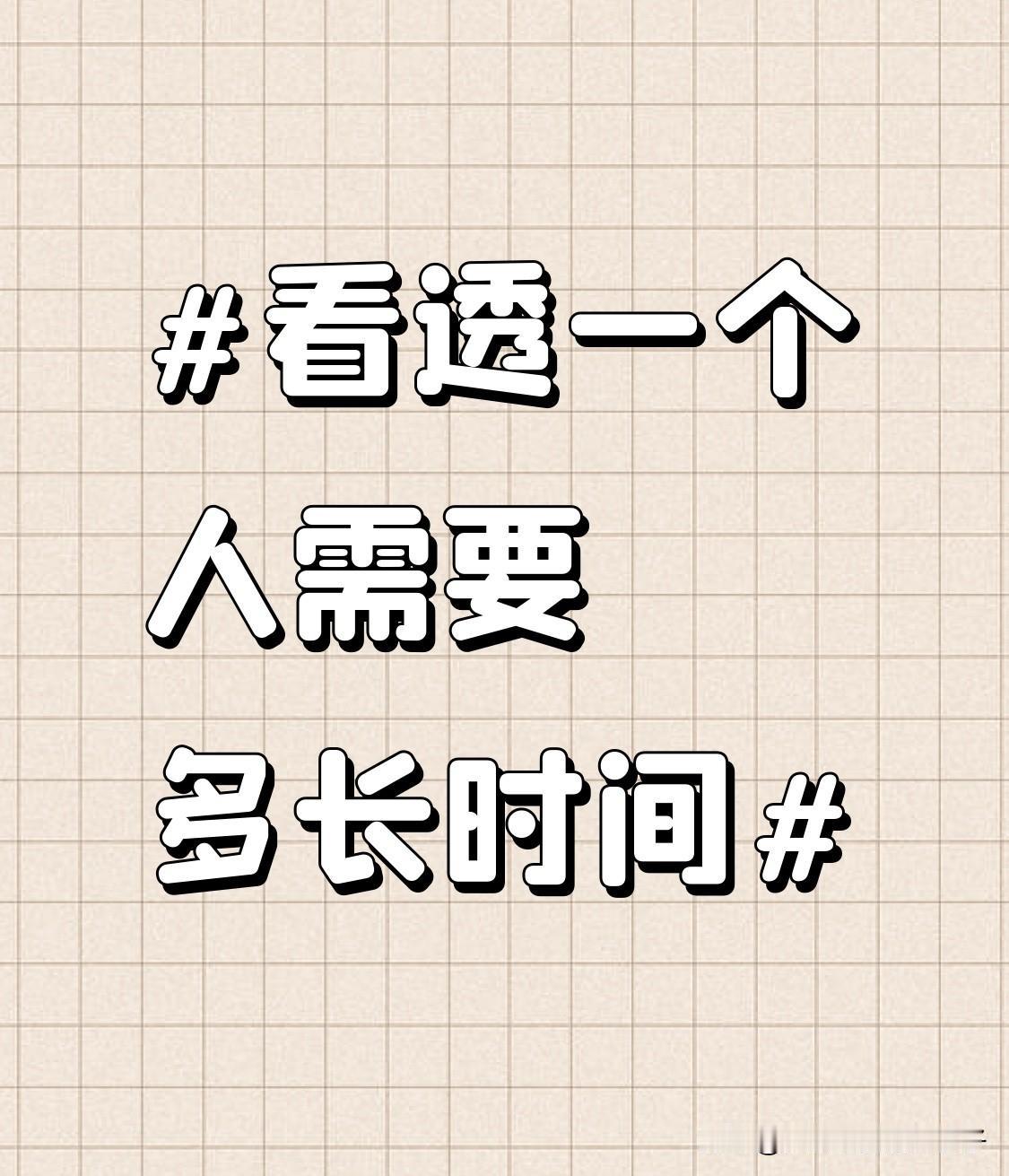 看透一个人需要多长时间?这还真没个准数。时间不是唯一标尺,关键得看经历的事儿。 要是平常只聊天吃饭,那看到的基本是对方想展示的表面,可能很久都看不透。但要是一起处理麻烦事,那他有没有责任心、靠不靠谱,一件事的功夫就能见分晓。面对利益和金钱,一次合作或分钱,他是自私还是大方,立马就清楚。看他对服务员、下属的态度,一顿饭或一次接触,就能知道他真实的人品修养。 所以啊,想快速看透一个人,得找“试金石”,一起做有难度的事、谈钱谈利益,事上见真章,最靠谱。