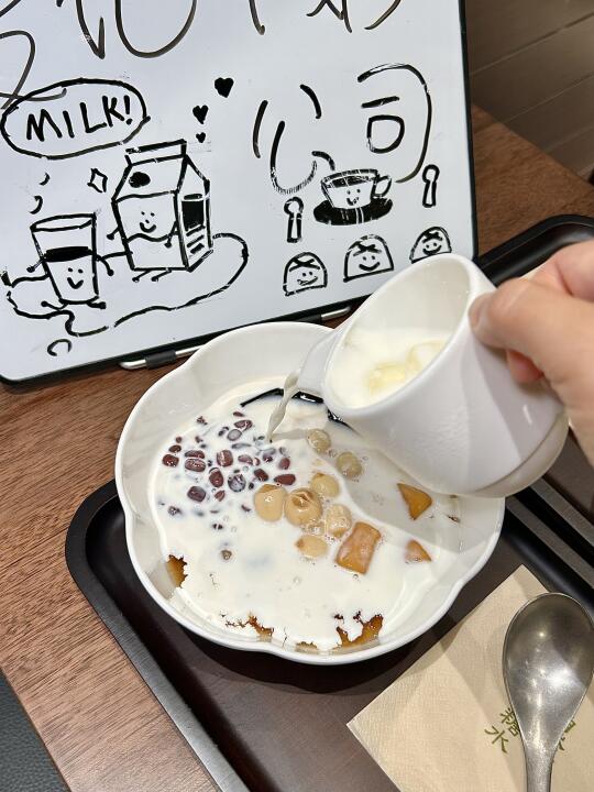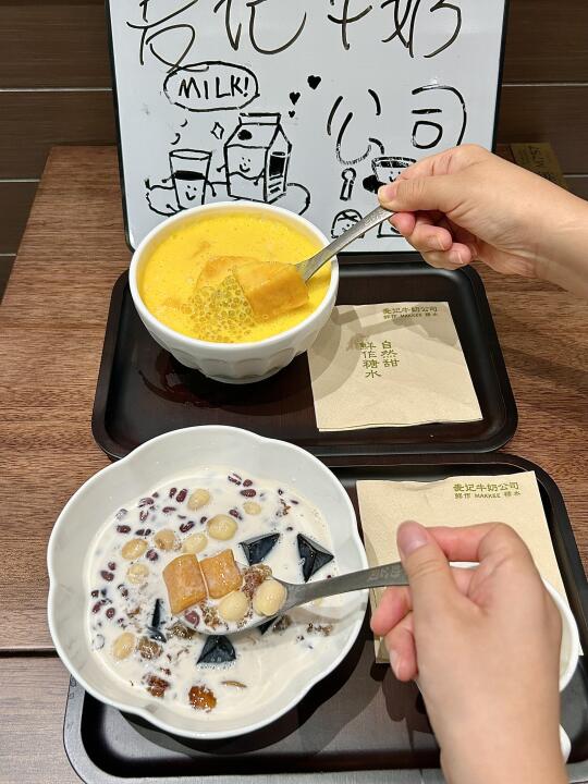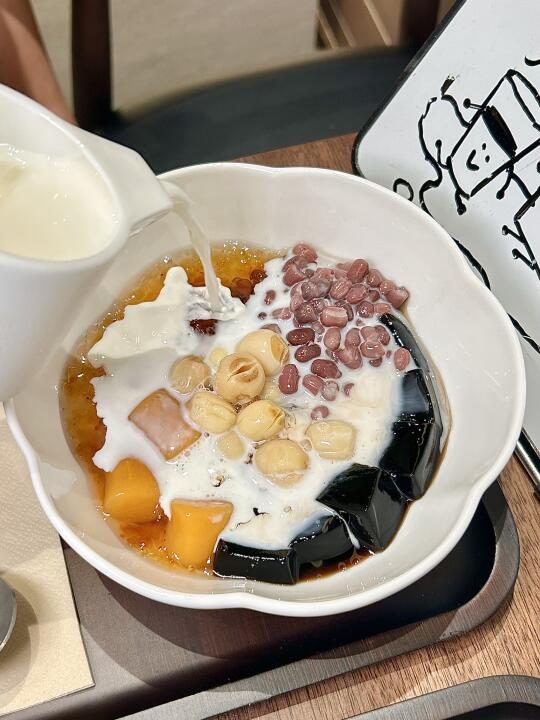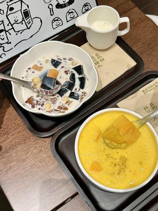 终于吃上了心心念念的中式糖水了!! 颜值又高又好吃😋健康平价 真的yyds 食材新鲜 每日现做小料 使用悦鲜活牛乳🥛 ✅麦麦大满贯:软糯桃胶➕鲜熬红豆➕粉糯莲子➕弹牙红薯圆➕滑嫩仙草!份量超级足👍🏻清凉好吃又过瘾!! ✅香芋黑米麻薯鲜奶:芋泥细腻绵柔 搭配了黑米 米香四溢 麻薯入口软弹拉丝 口感丰富有层次!! 7.4-7.6开业活动麦麦大满贯/香芋黑米麻薯鲜奶买1️⃣送1️⃣ 到店打卡还🉑参与套圈活动 小🎁带回家