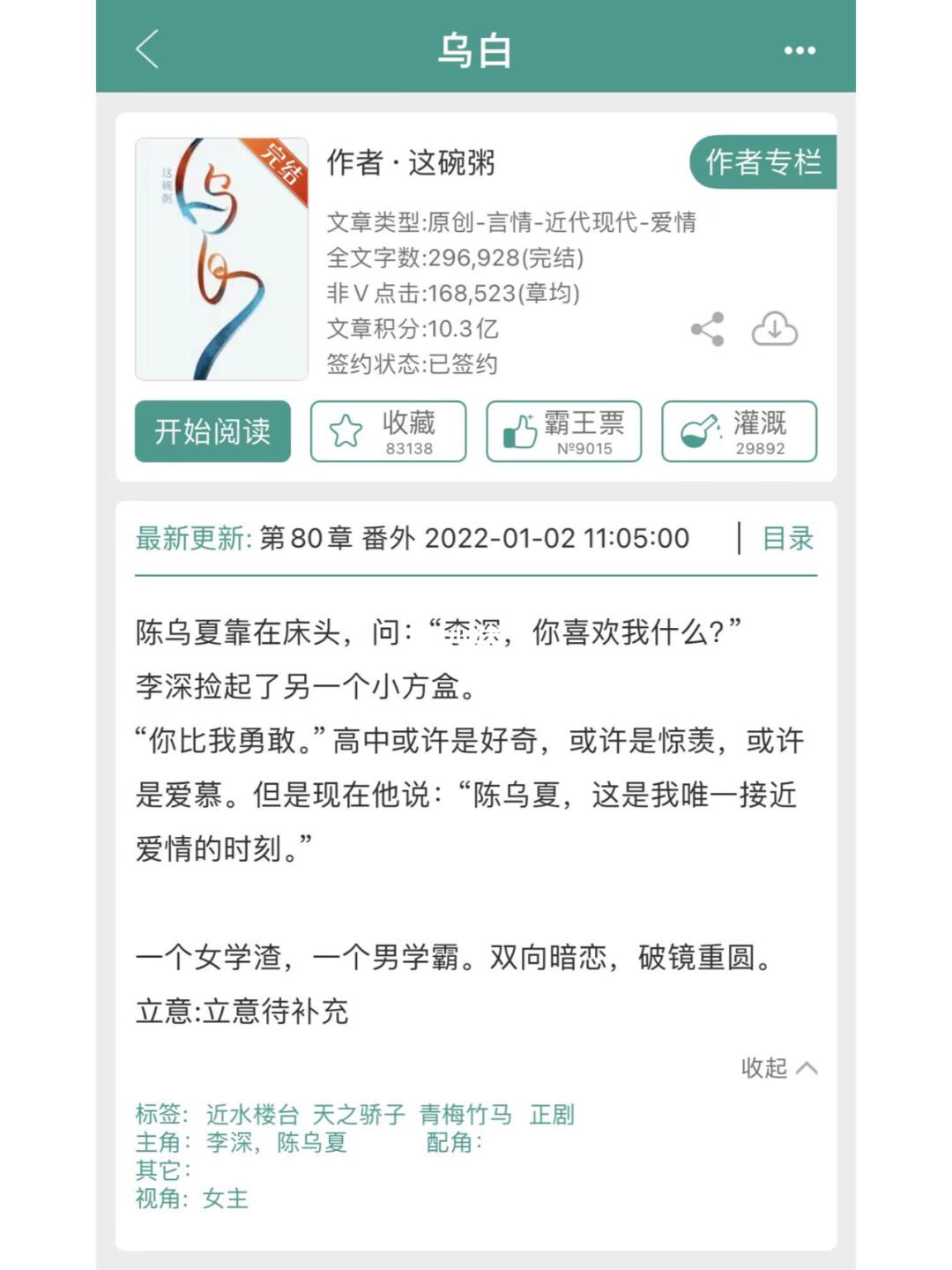 “你比我勇敢。”高中或许是好奇,或许是惊羡,或许是爱慕。但是现在他说:“陈乌夏,这是我唯一接近爱情的时刻。”