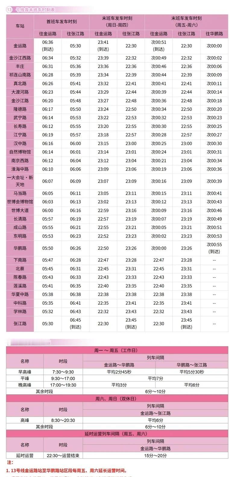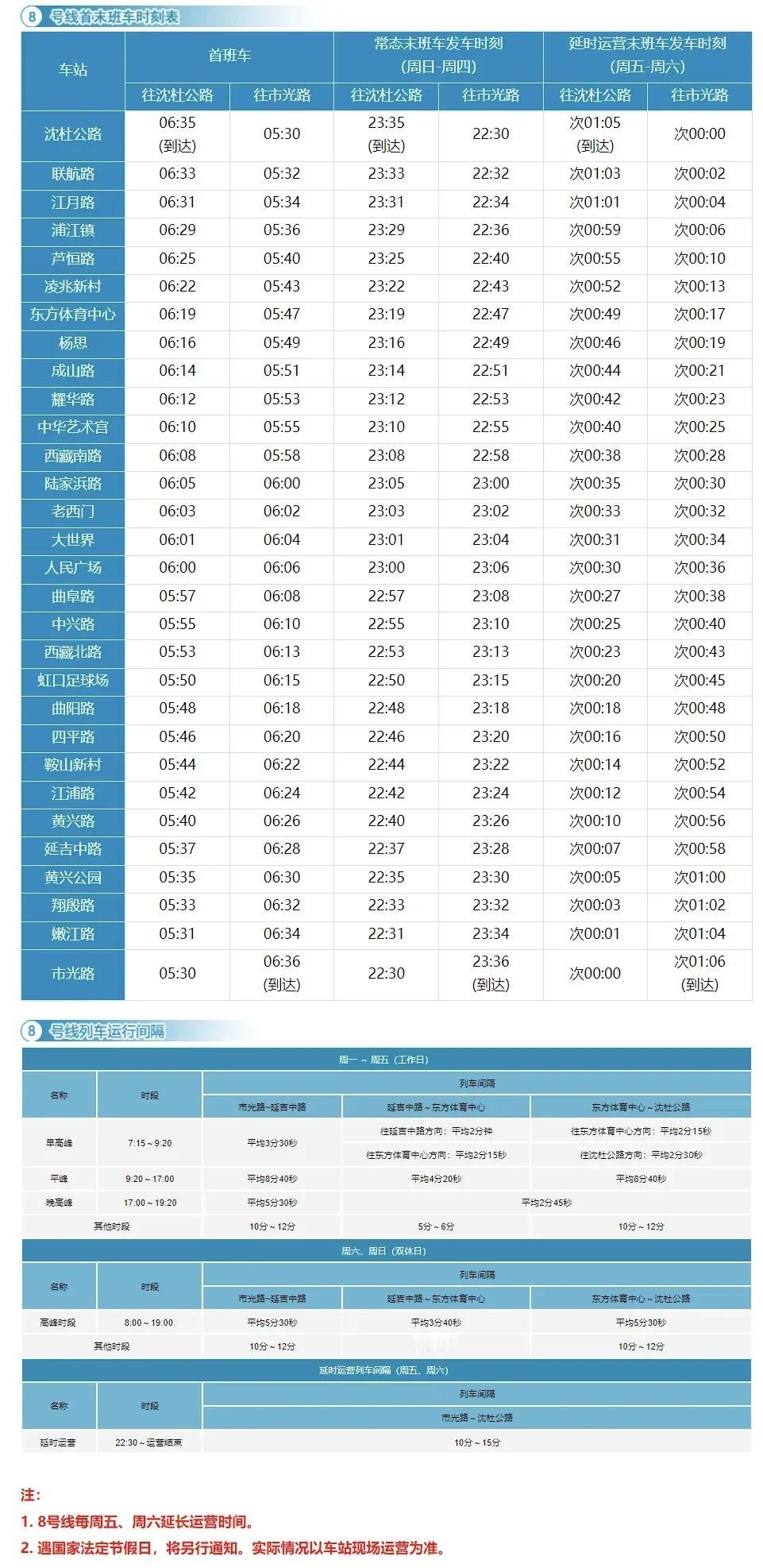 上海所有地铁首末班车时刻表(超全) 上海地铁最新时刻表!2 号线新增站点速藏 上海地铁 2 号线终于上新啦✨蟠祥路・国家会计学院站 11.1 正式开通全网首末班车时间同步更新,打工人通勤、周末出游都用得上~ ✅ 重点划重点: 1/7/8/9/10/13 号线周五六延时运营,夜猫子放心玩 各线路高峰间隔 2-5 分钟,平峰 5-10 分钟,出行不赶慌 附在建线路进展(19/21/22 号线等),未来出行更方便 打工人赶紧码住!下次坐地铁再也不用慌慌张张查时间啦建议收藏 + z发给一起通勤的小伙伴 上海 下班挤地铁 上海地铁