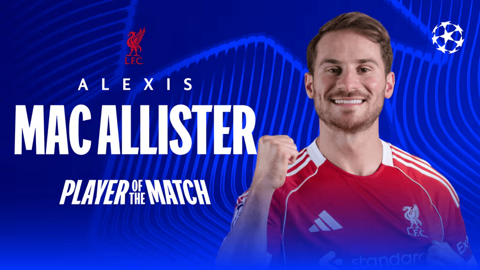赛后,全场比赛打入唯一进球的红军中场麦卡利斯特当选欧足联官方评选的全场比赛最佳球员。